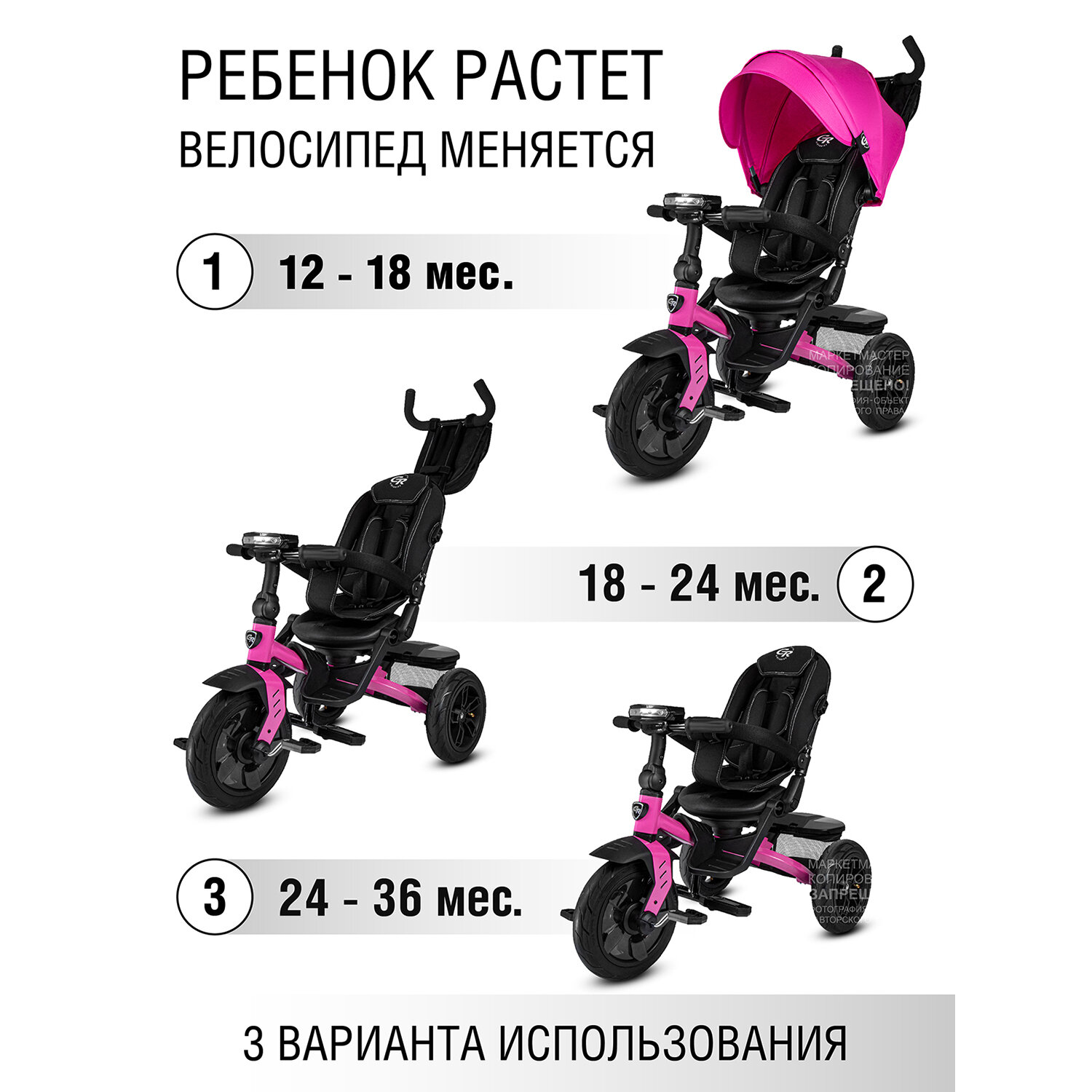 Трехколесный велосипед CITY-RIDE Трехколесный велосипед CITY-RIDE CR-B3-10 Lunar, розовый/черный