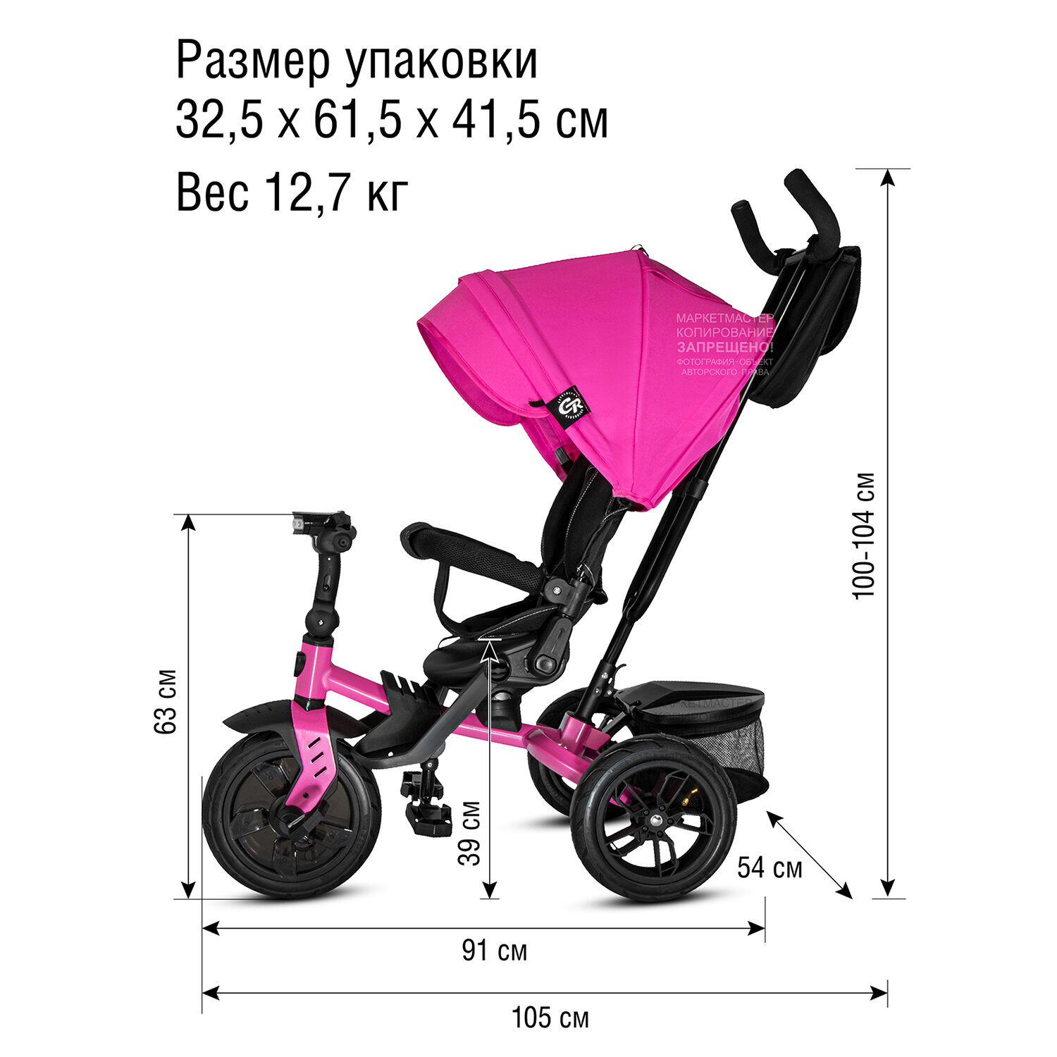 | Особенности конструкции | мягкое сиденье / переднее крыло / подставки для ног / регулировка сиденья / сиденье со спинкой / тканевая вставка на сиденье |