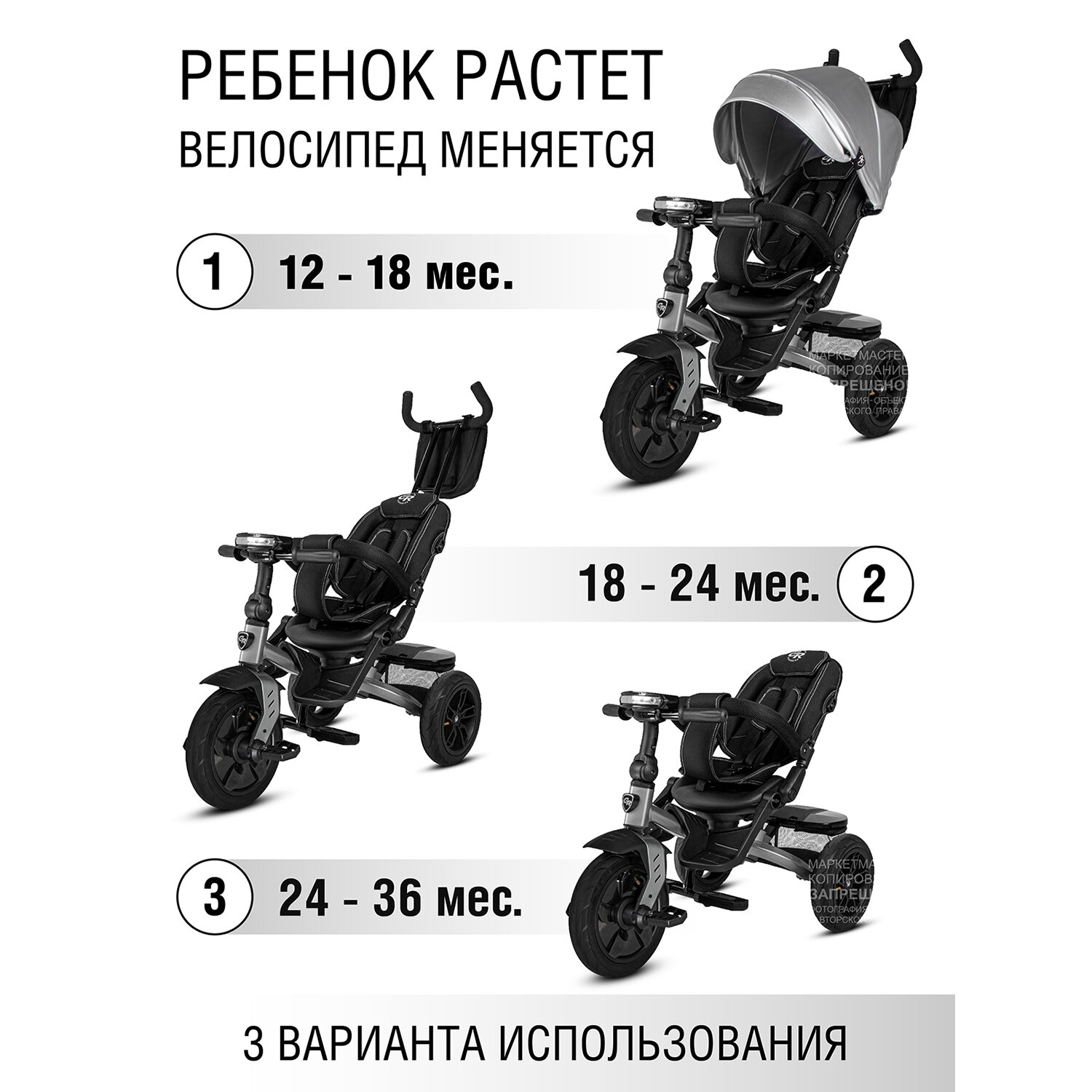 СохранитьВелосипед детский 3-колесный ТМ CITYRIDE LUNAR, складная крыша, надувные колеса 12"/10", ножной тормоз, поворот сиденья 360◦, свет/звук, CR-B3-10GY интересное: