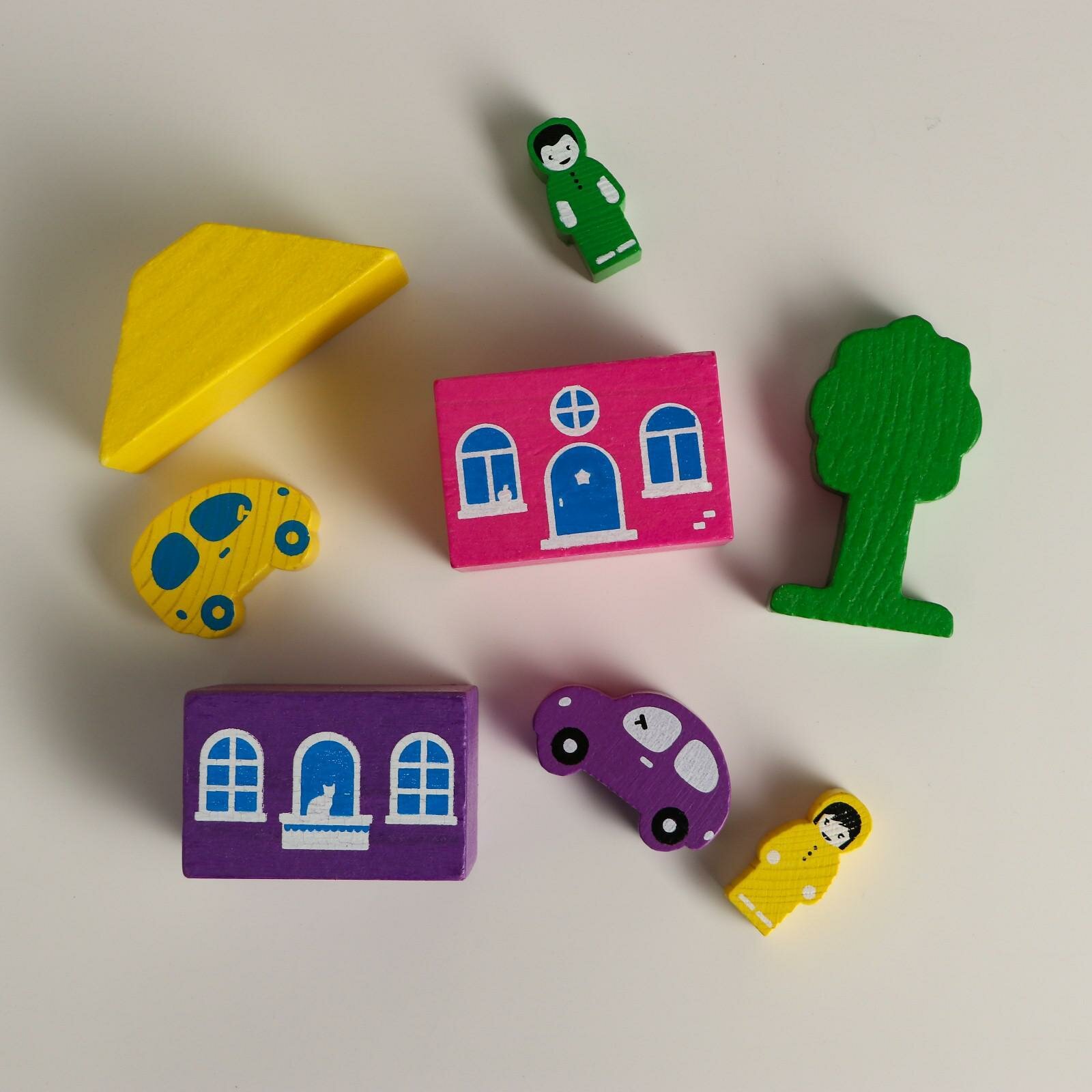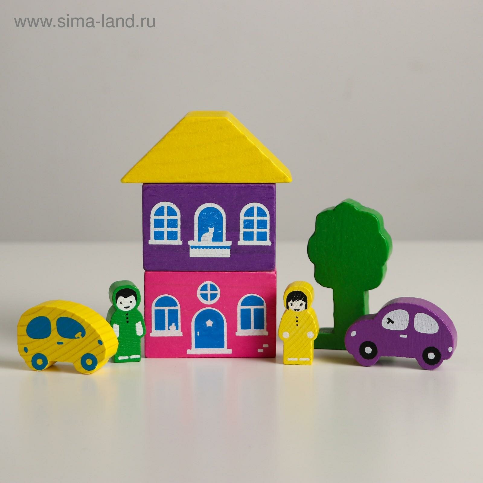 Деревянный конструктор «Цветной городок» фиолетовый, 8 деталей, Томик