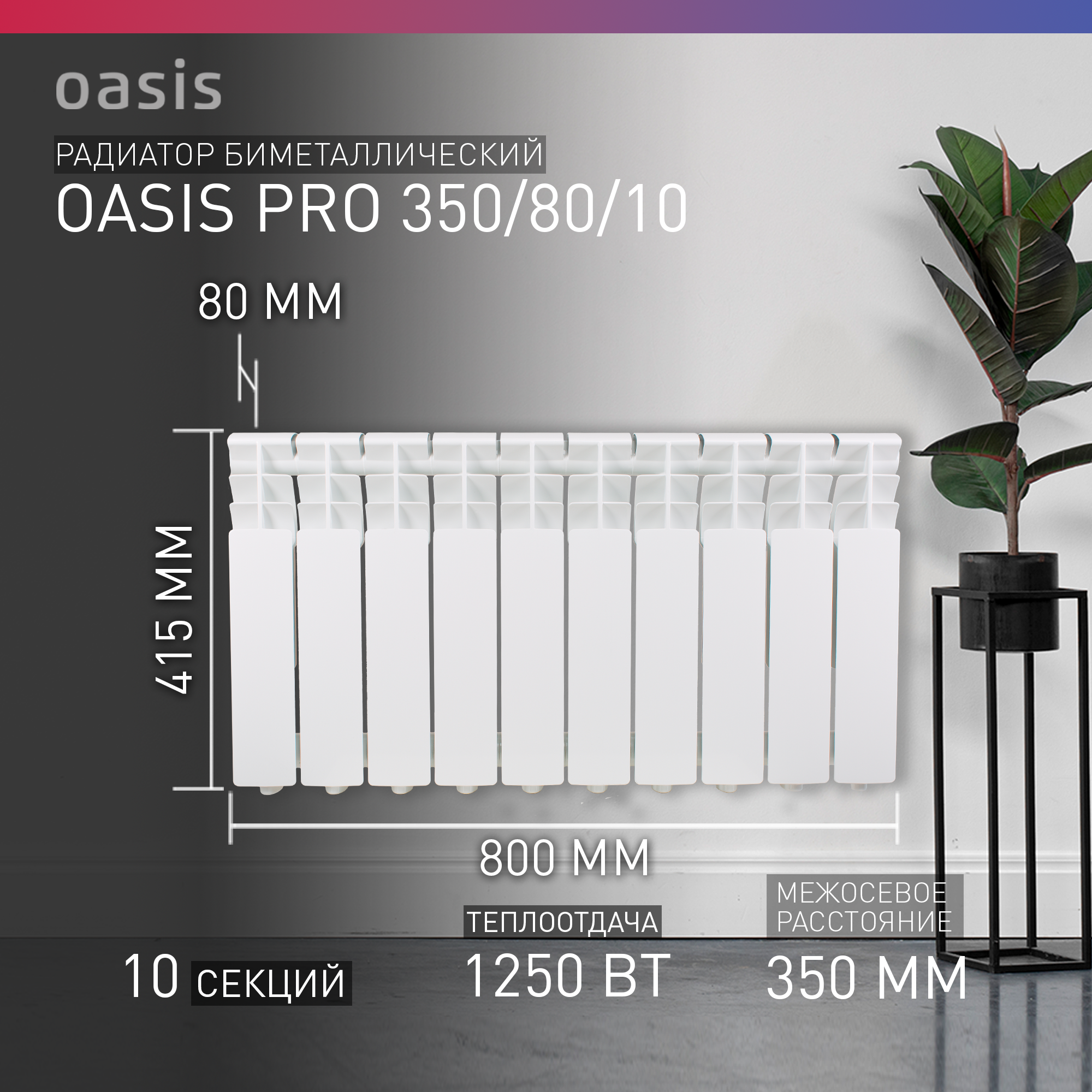 Радиатор отопления биметаллический Oasis Pro 350/80 10 секций