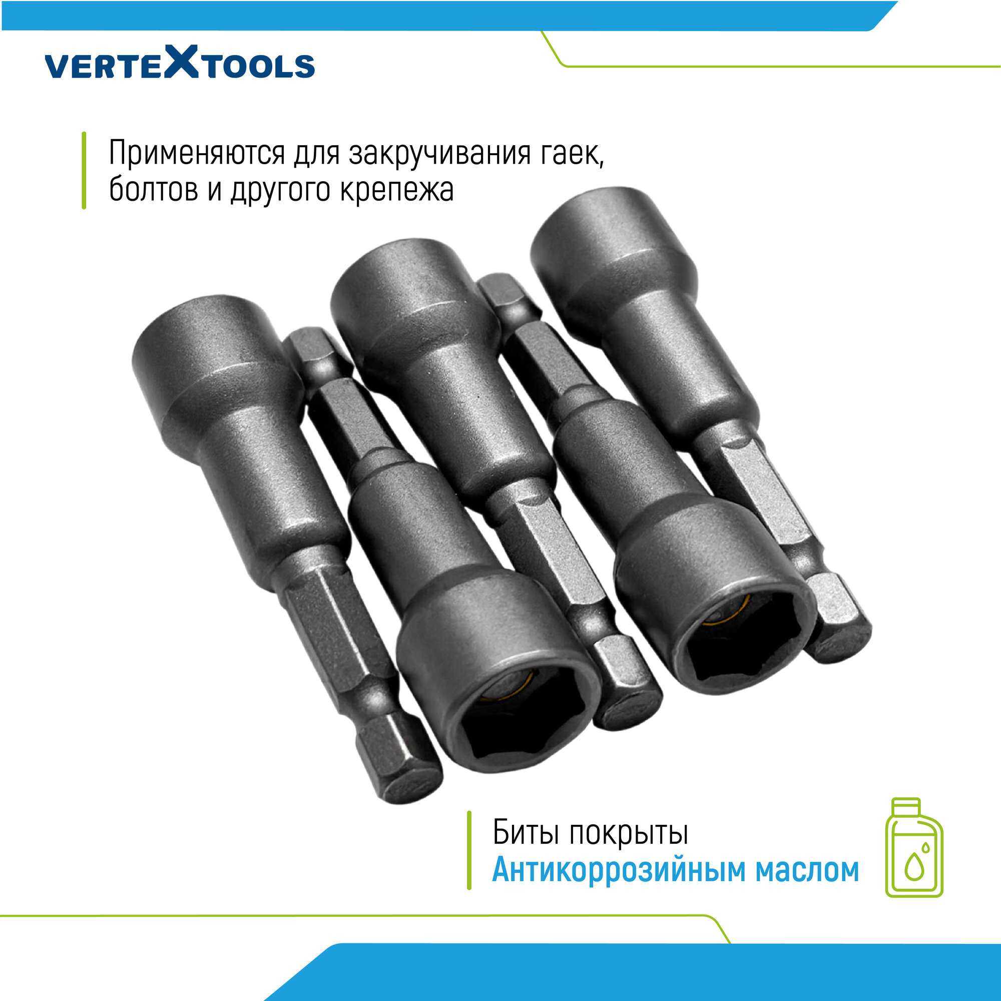 Биты с торцевыми головками VertexTools 13х65 мм, 5 шт.
