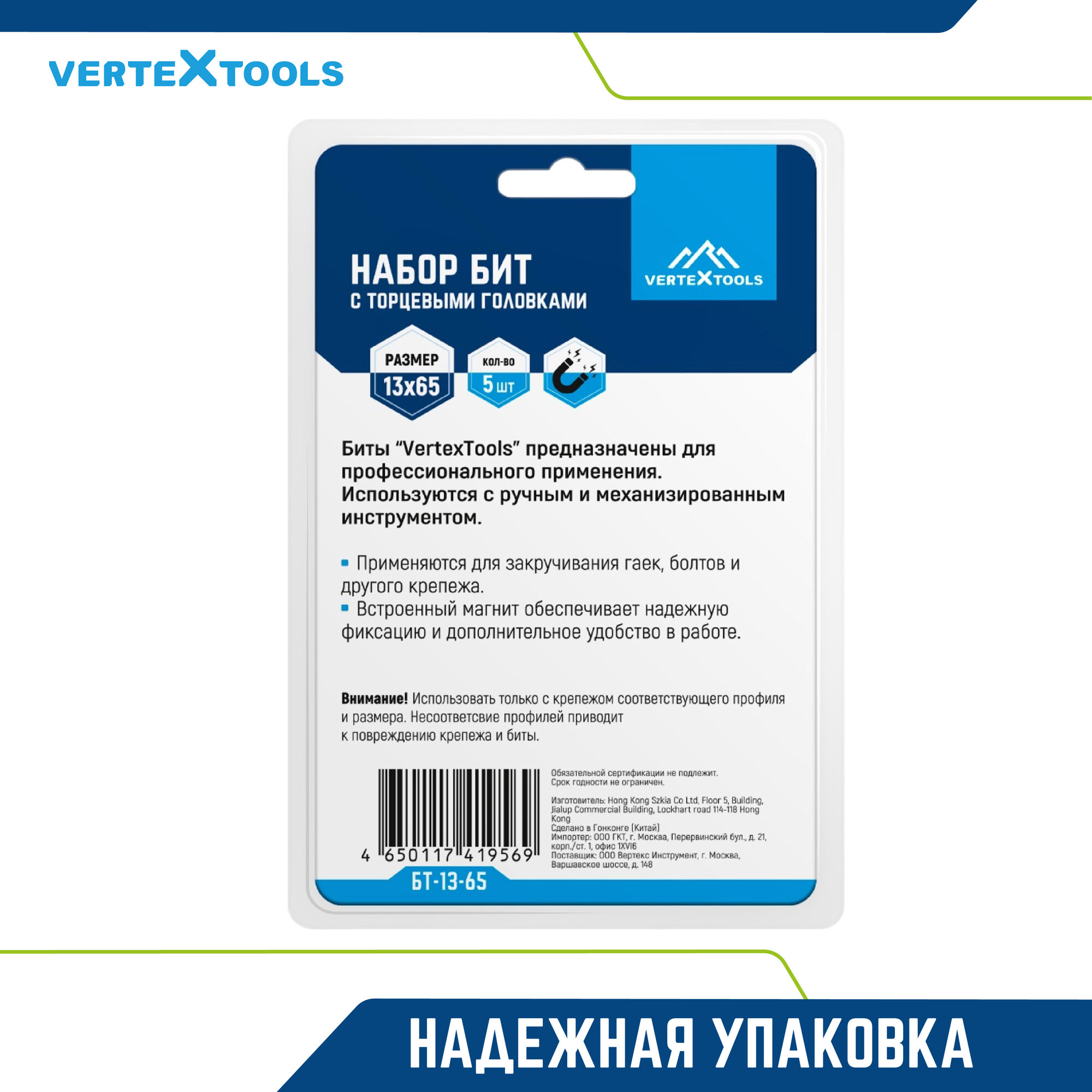 Биты с торцевыми головками VertexTools 13х65 мм, 1 шт.