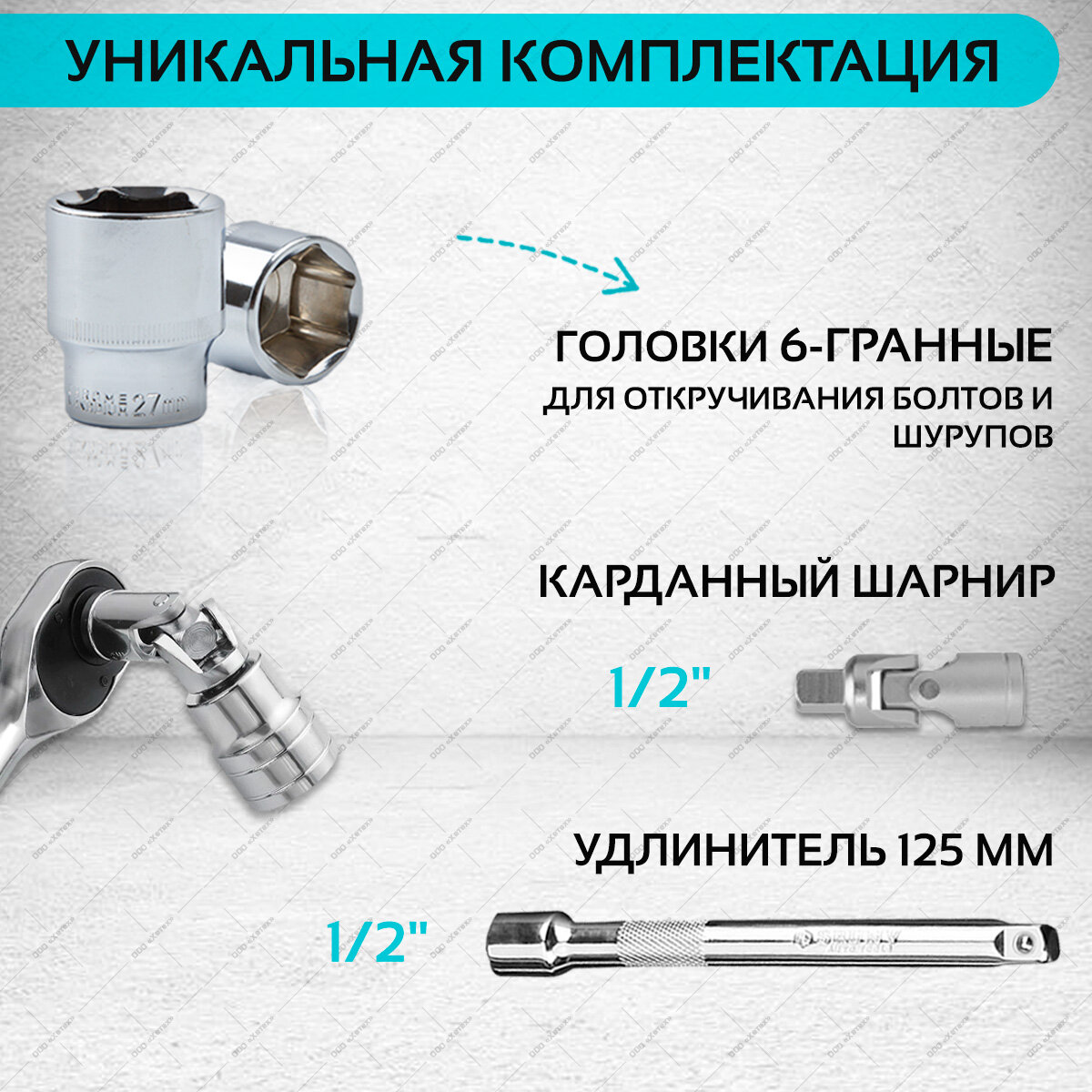 | Головки торцевые подробно | 1/2" 10, 11, 12, 13, 14, 15, 16, 17, 18, 19, 20, 21, 22, 23, 24, 27, 30, 32 мм / 1/4" 4, 4.5, 5, 5.5, 6, 7, 8, 9, 10, 11, 12, 13 мм |