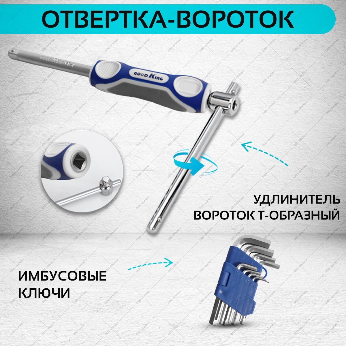 Набор инструментов 85 предметов 1/2, 1/4 трещотка 72 зубца GOODKING M-10085, набор торцевых головок, гаечных ключей, набор для авто, для дома