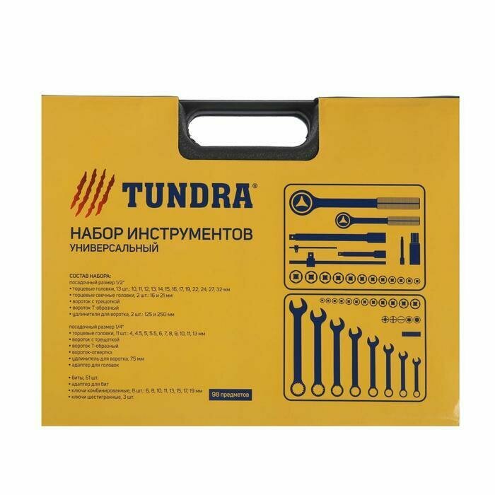 Набор инструментов в кейсе TUNDRA, автомобильный, 1/2' и 1/4', 98 предметов интересное: