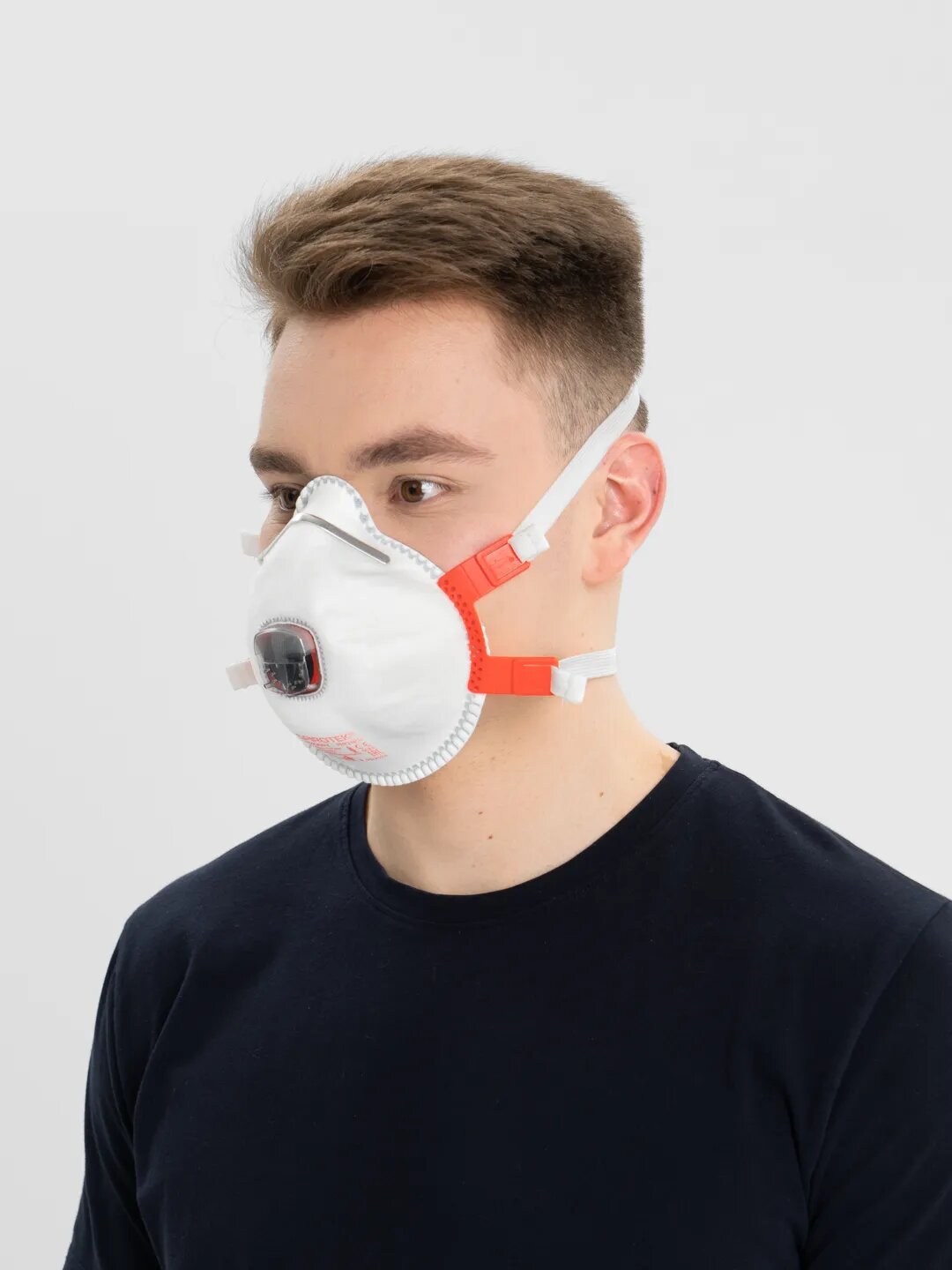 | Плюсы: | Соответствует классу FFP3, плотная прокладка по краю блокирует потоки воздуха мимо маски. |