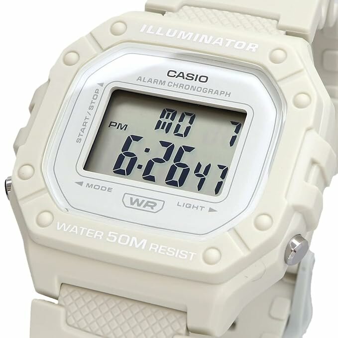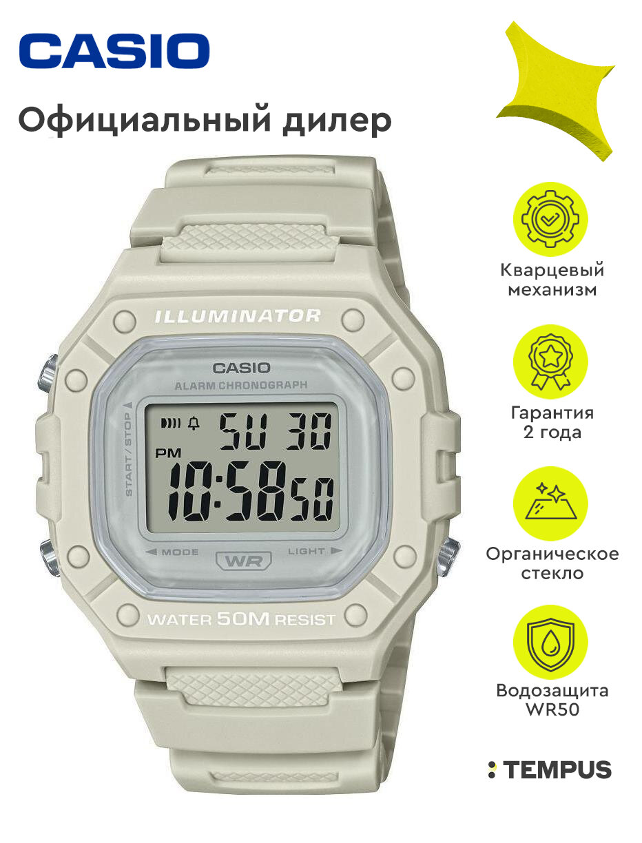 W-218HC-8A Casio наручные часы кварцевые WR50 (5 атм) мужские, женские бежевый секундомер будильник отображение дня недели, отображение числа подсветка дисплея акриловое стекло