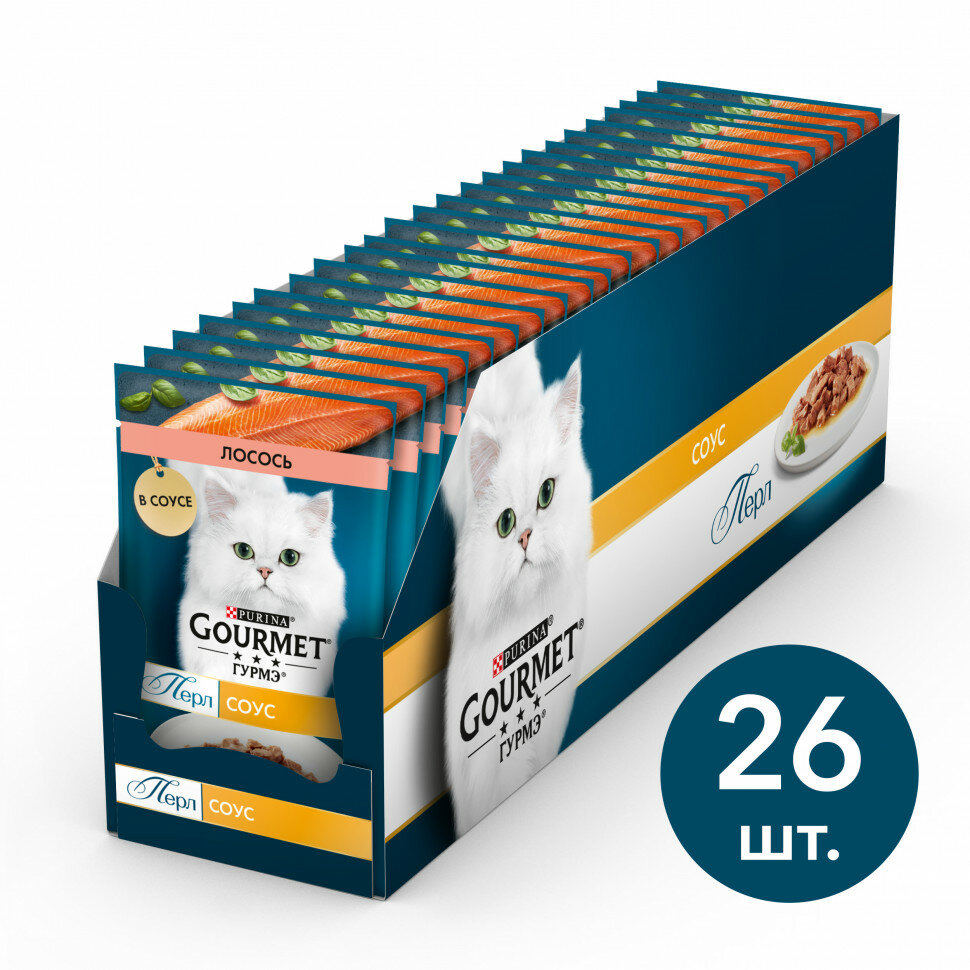 Влажный корм Гурмэ® Перл Нежное филе для кошек, с лососем в соусе, Пауч, 75 г*26 шт