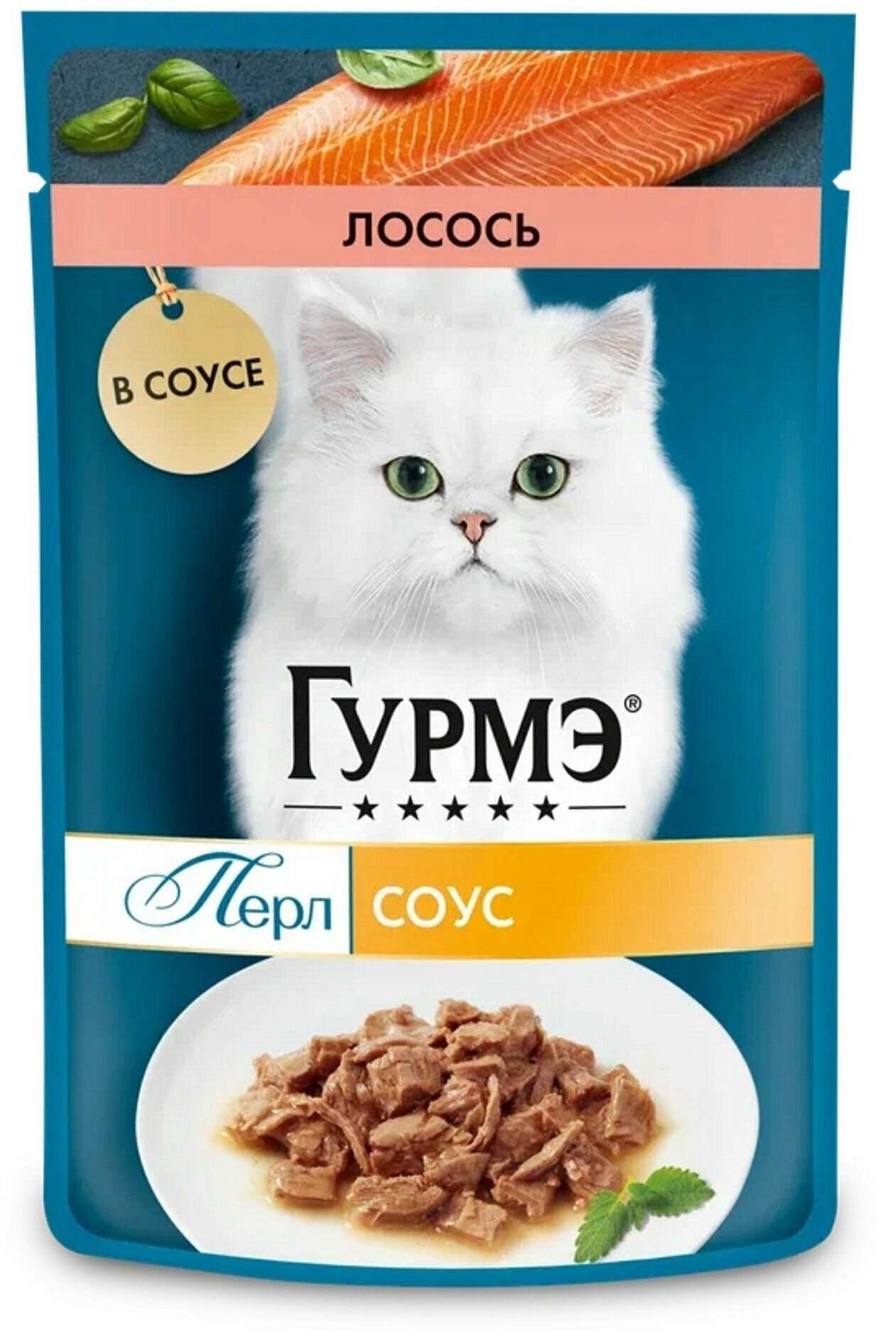 Влажный корм Gourmet Перл Соус Де-люкс для кошек, с лососем в роскошном соусе, 85 г, 24 штуки