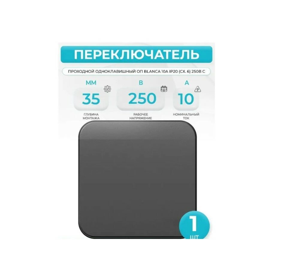 Переключатель SYSTEME ELECTRIC (SCHNEIDER ELECTRIC) SCHNEIDER ELECTRIC BLANCA 1-клавишный (cх.6) изол.ПЛ, 10А, 250B, антрацит
