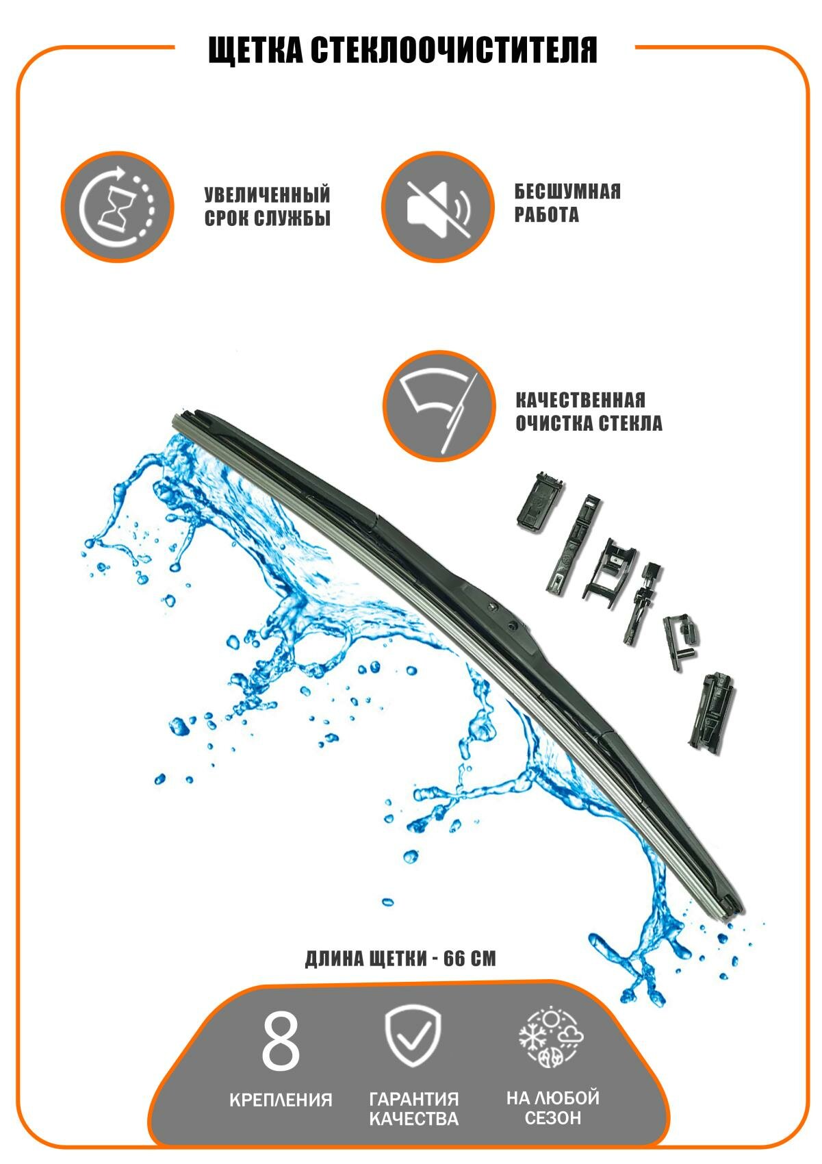 Щетка Стеклоочистителя 66см гибридная с универсальным креплением (OE типы креплений + крюк)