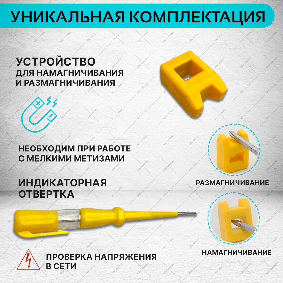 | Аксессуары в комплекте | держатель для бит / нож / ножовочные полотна по металлу / отвертка индикаторная / рулетка / клещи переставные / молоток / отвертка для точных работ / плоскогубцы |