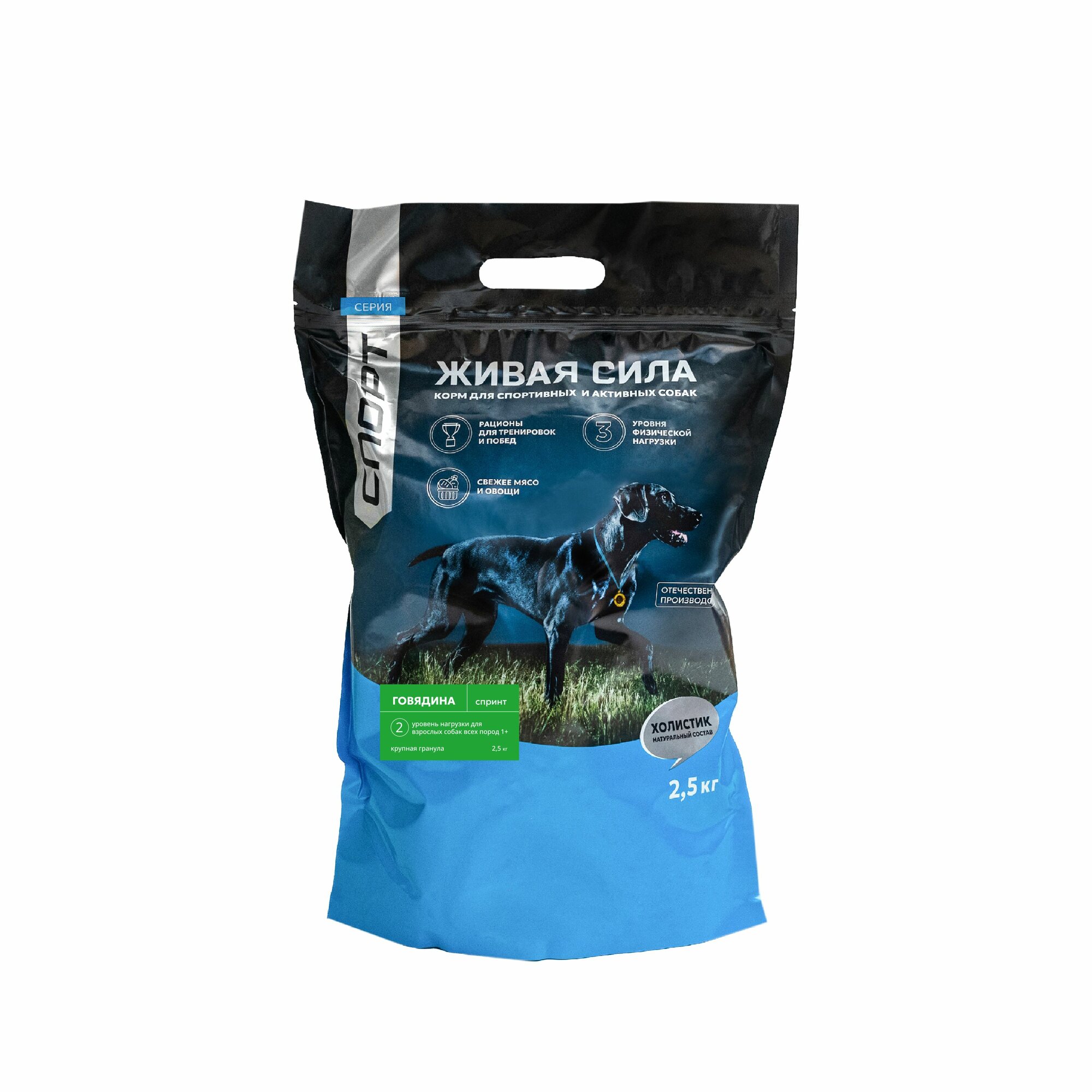 Живая сила Спорт Сухой корм для взрослых собак "Спринт" с говядиной, крупная гранула 2,5 кг