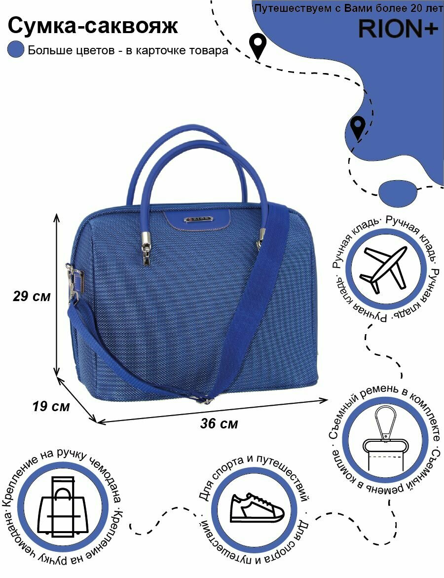 СохранитьЖенская дорожная сумка с ремнем на ручку чемодана Рион+ (RION+) / ручная кладь для самолета, поезда, машины / саквояж для города, R240, Тканевая, 20 литров, голубой интересное: