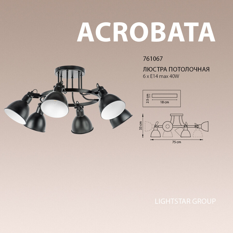 Lightstar 761067 Люстра ACROBATA 6х40W E14 черный