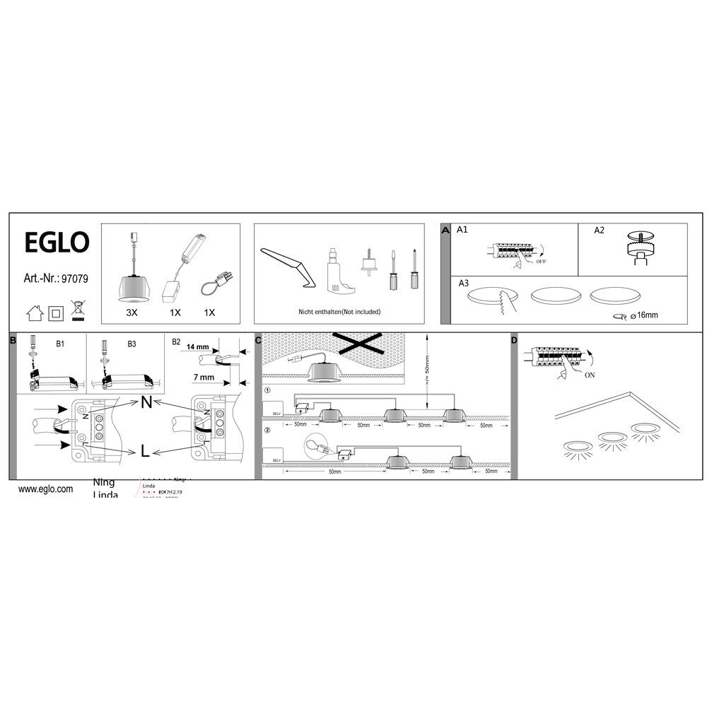 | Комплектация | Встраиваемые светильники Eglo 97079 |