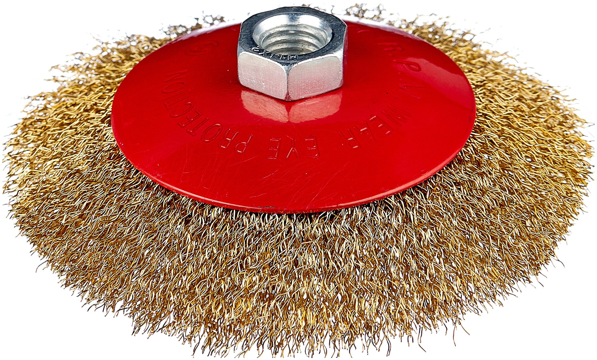 Щетка для УШМ ELITECH 125 мм М14 "тарелка" латунированная витая проволока 0.3 мм