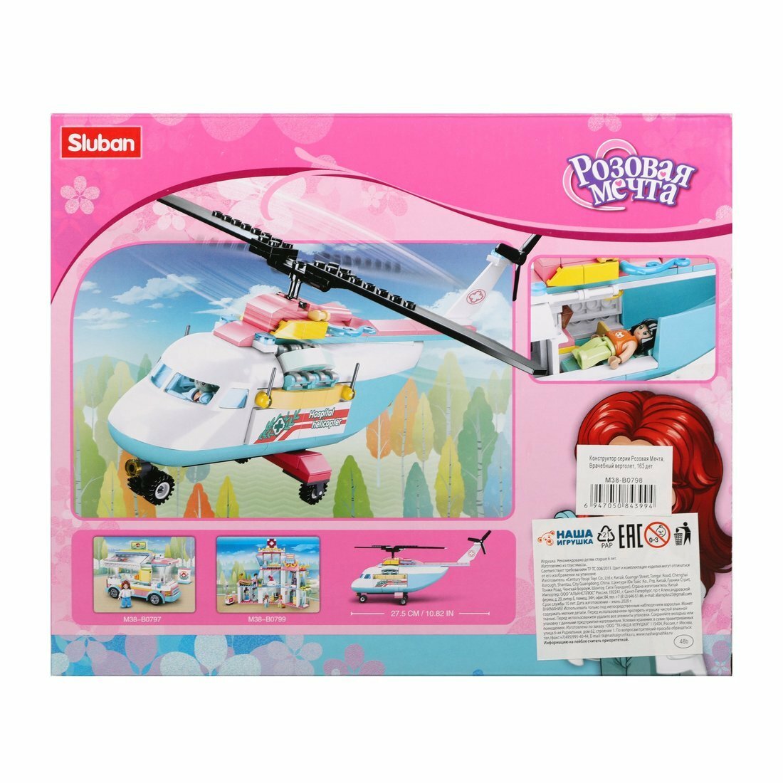 Конструктор Sluban "Розовая мечта", Вертолет, 163 детали, в коробке