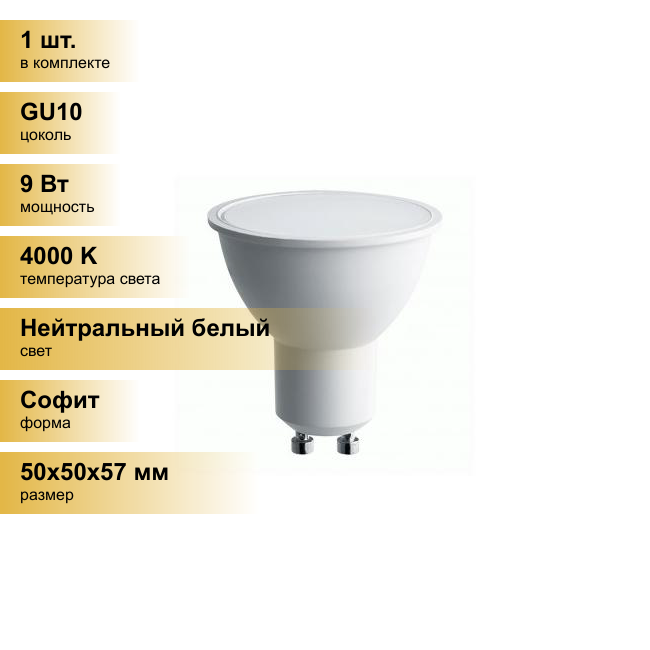 Лампочка светодиодная рефлекторная GU10/MR16 9Вт 810Лм белый нейтральный 4000К, 55149