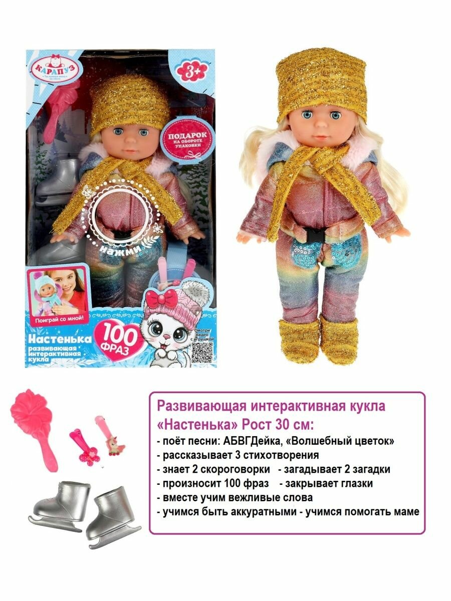 Купить Кукла функциональная Настенька Y30D-POLI11-WINTER-22-RU (30 см, закрывает глазки, 100 фраз, с коньками )