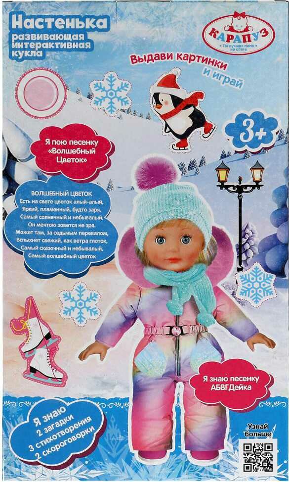 Ниже Вы можете прочитать отзывы на Кукла функциональная Настенька Y30D-POLI11-WINTER-22-RU (30 см, закрывает глазки, 100 фраз, с коньками ), ознакомится с подробными характеристиками, посмотреть интересные обзоры и фотографии на Кукла функциональная Настенька Y30D-POLI11-WINTER-22-RU (30 см, закрывает глазки, 100 фраз, с коньками ).