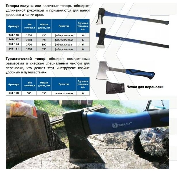 Топор кобальт -колун 2000г, "Ушастый", фибергласовая рукоятка 241-147