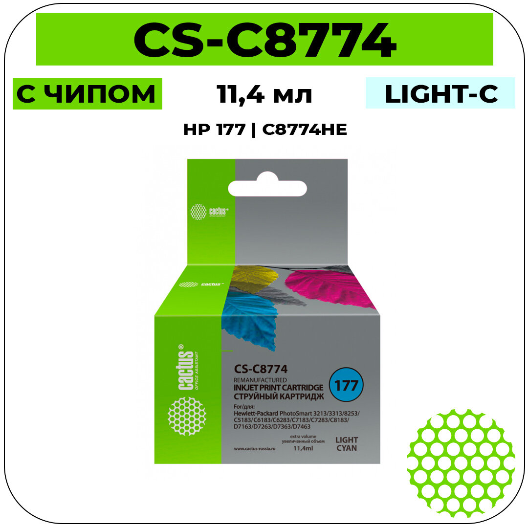 Картридж струйный Cactus CS-C8774 177 светло-голубой (11.4мл) для HP PS 3213/3313/8253/C5183/C6183/
