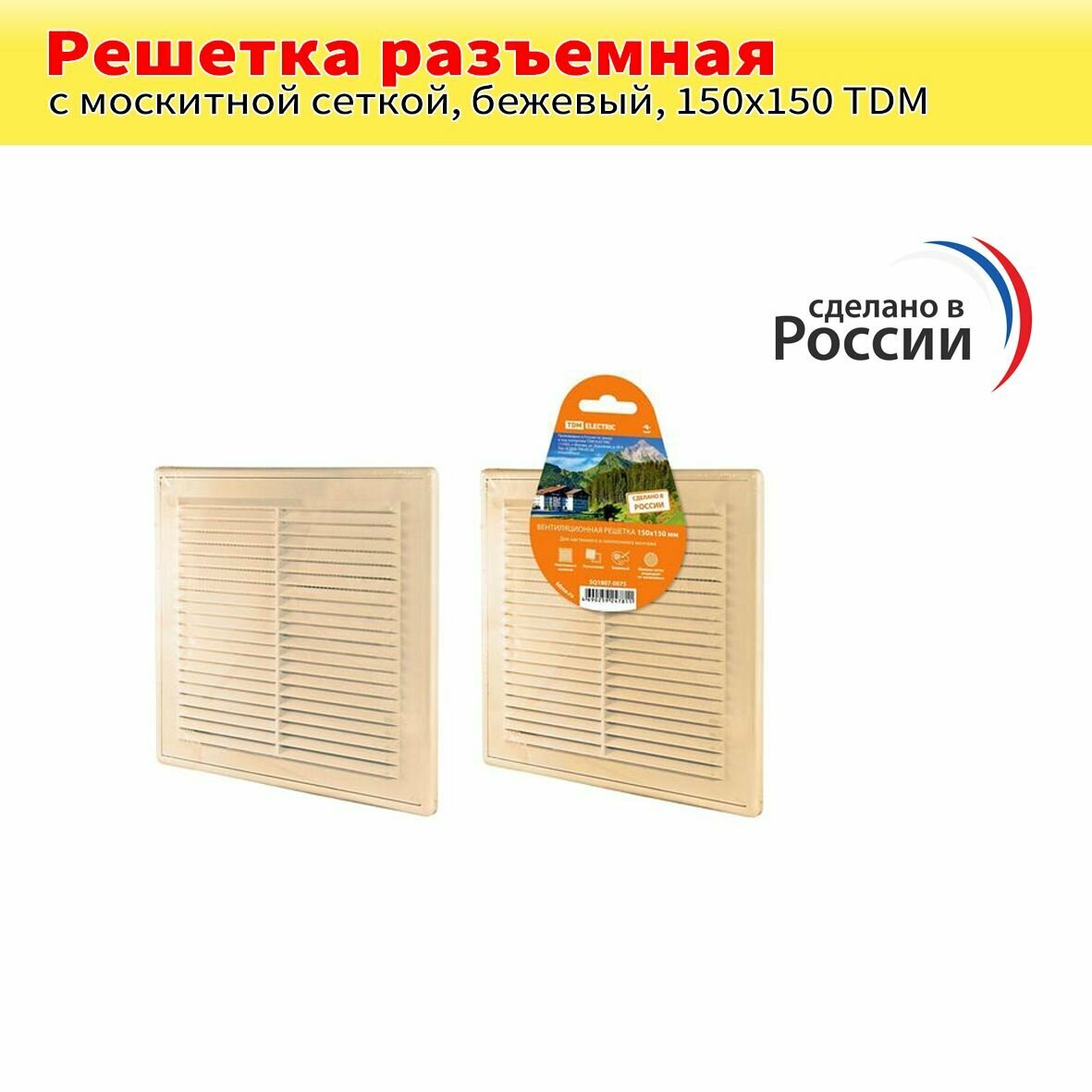 Вентиляционная решетка TDM Electric, с москитной сеткой, 150х150 мм, бежевая , 1 шт.