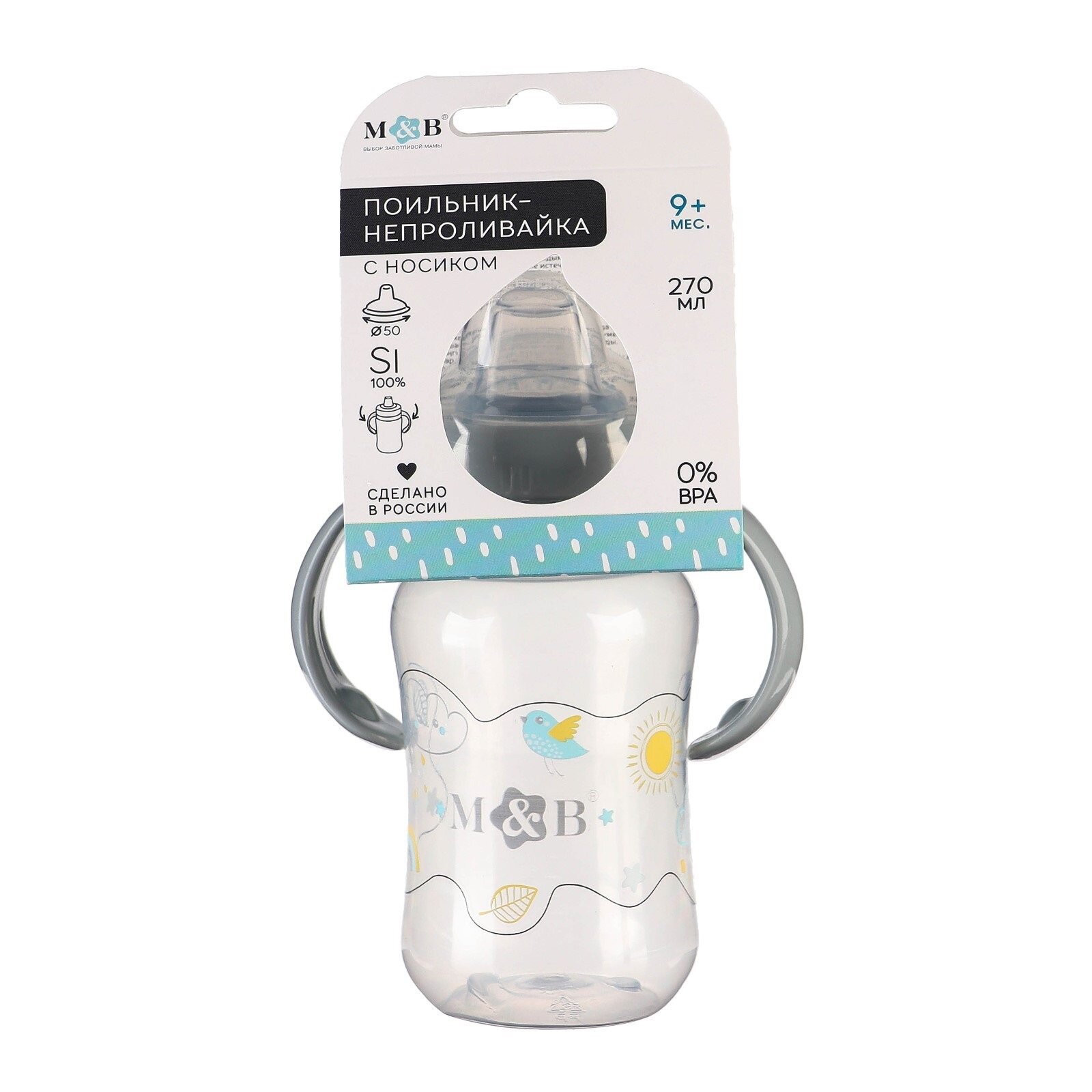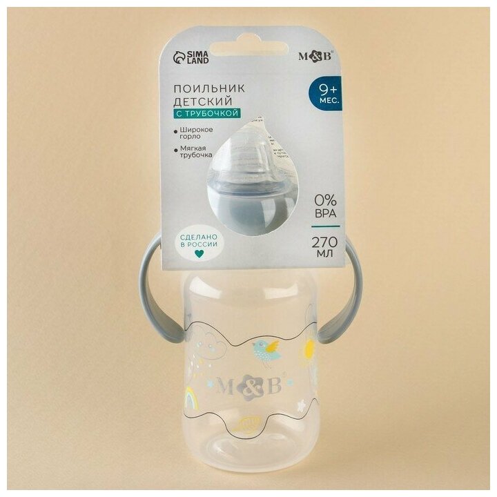 Поильник - непроливайка детский с мягким носиком «M&B», 270 мл., с ручками, цвет серый