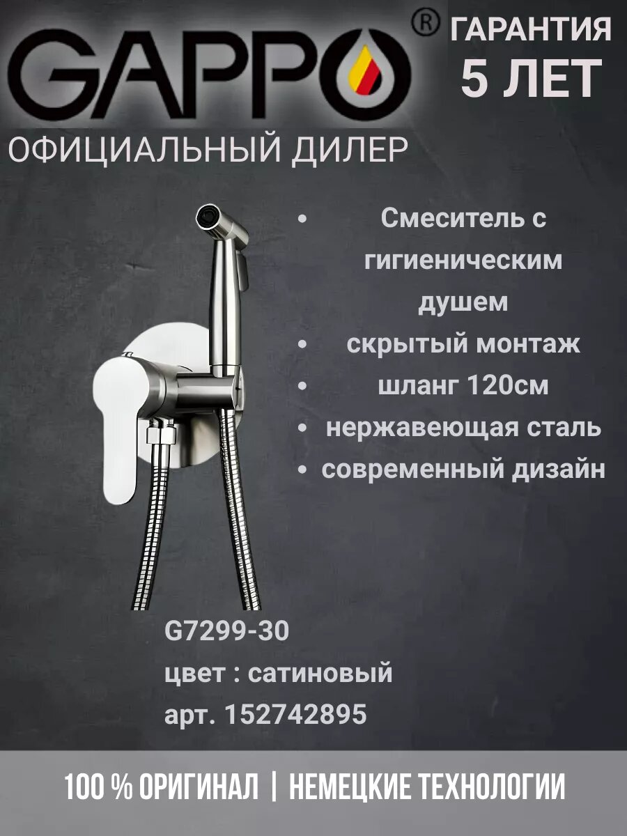 G7299-30 GAPPO Смеситель с гигиеническим душем скрытого монтажа, нержавеющая сталь