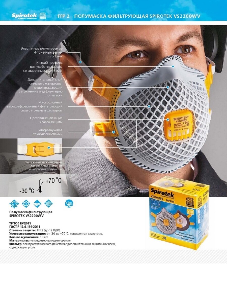 Респиратор Spirotek VS2200WV упаковка 10 шт. FFP2 + сварочные дымы