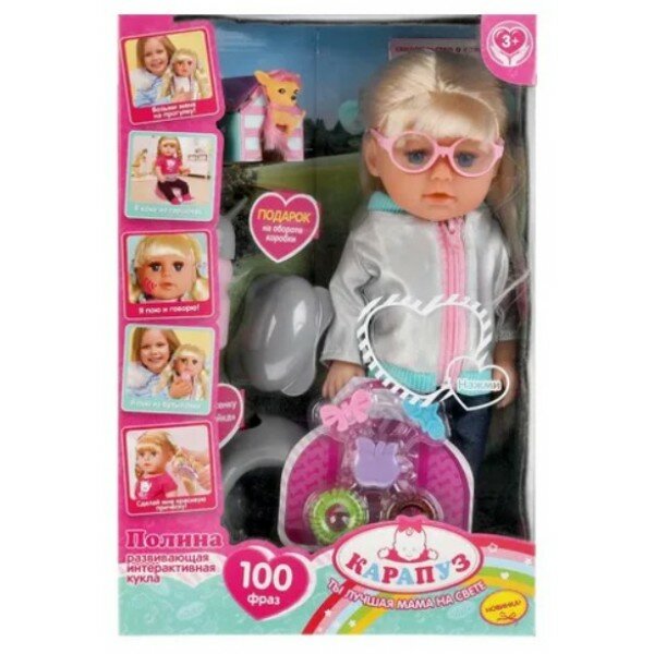 Кукла озвученная АБВГДЕЙКА песня Полина 35см, пьет, писает, туфель, 7аксессуаров. Карапуз / кукла интересное: