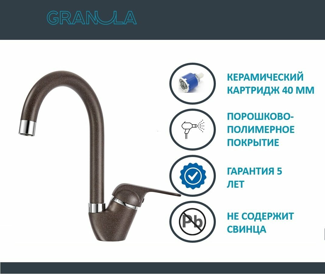 Смеситель Granula GR-1024 пирит, для кухонной мойки
