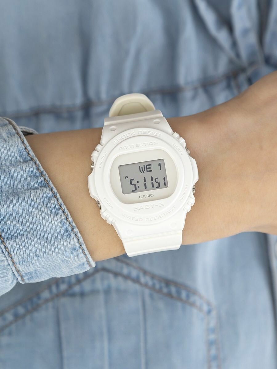 Наручные часы CASIO BGD-570-7 женские, кварцевые, будильник, секундомер, таймер обратного отсчета, водонепроницаемые, противоударные, подсветка дисплея, белый