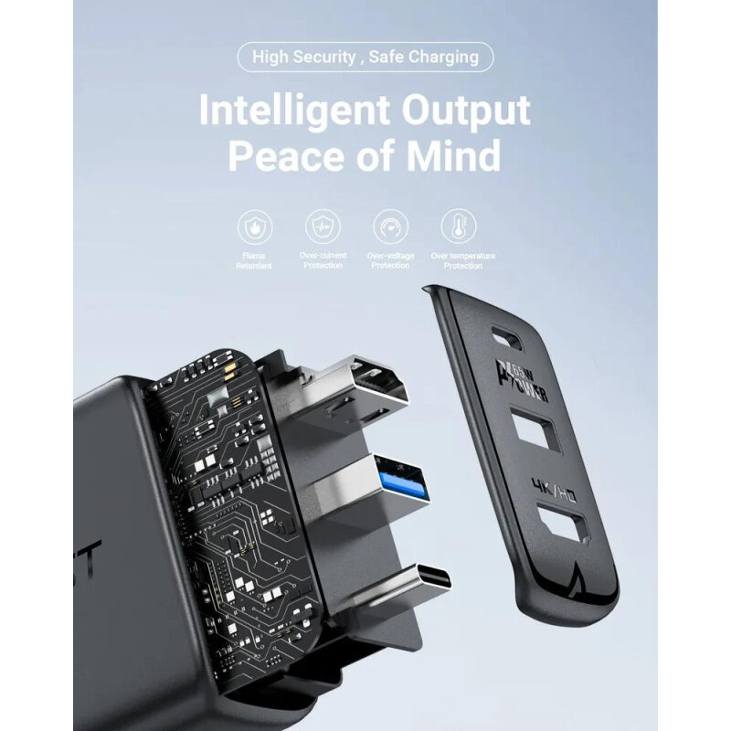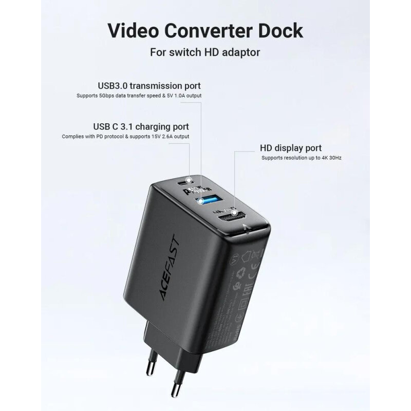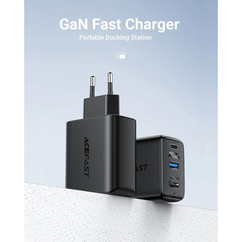 Мультифункциональное зарядное устройство ACEFAST A17 GaN 65W (Type-C PD60W + USB 3.0 5W + HDMI 4K@60Hz) + Кабель Type-C to Type-C 3.1, 1.8м, Черный