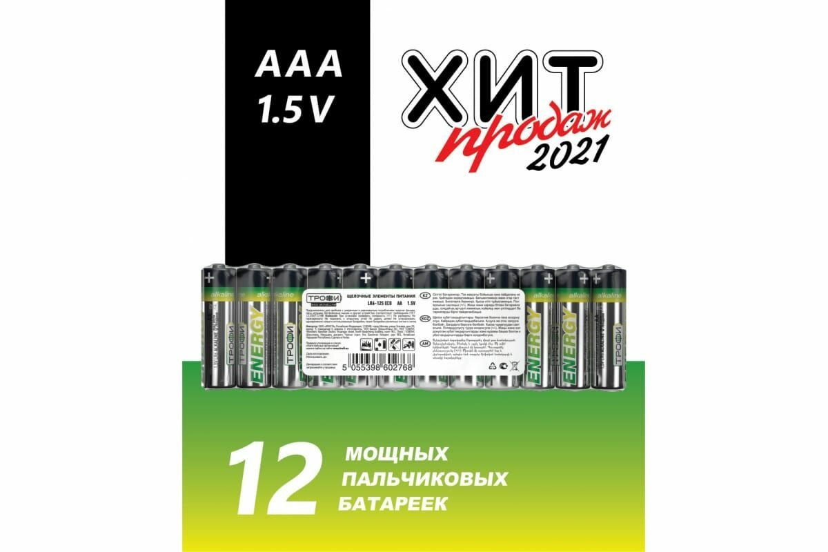 Батарейки Трофи LR03-12S (ААА, мизинчиковые) (12шт/уп) зеленый интересное: