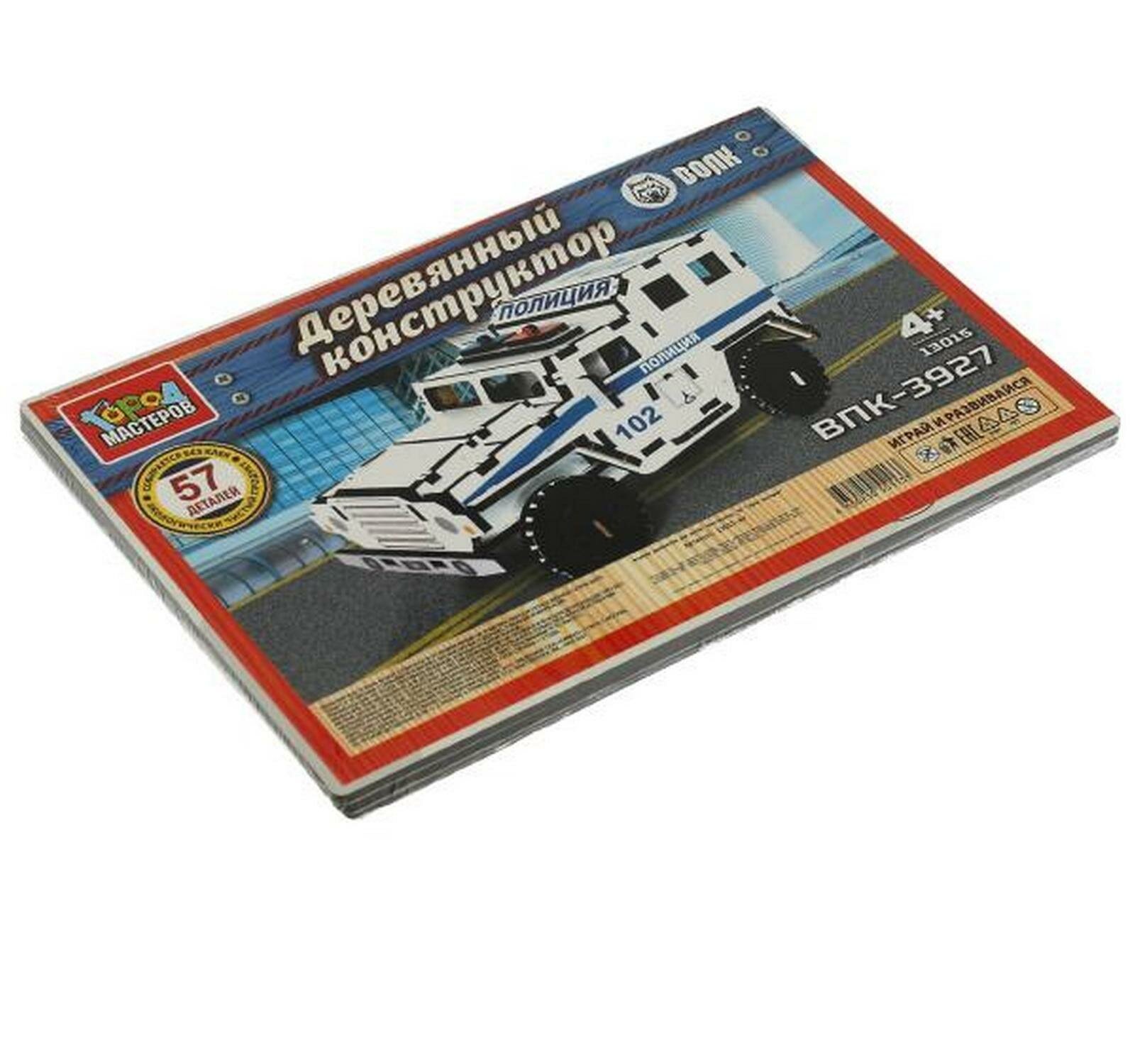 ВПК Конструктор Город Мастеров деревянный бронемашина волк полиция, 57 дет Город мастеров