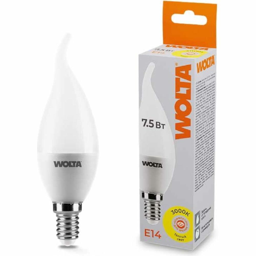 Wolta лампа св/д свеча на ветру C37 E14 7,5W(625Lm) 3000K 2K 125X37 25YCD7.5E14