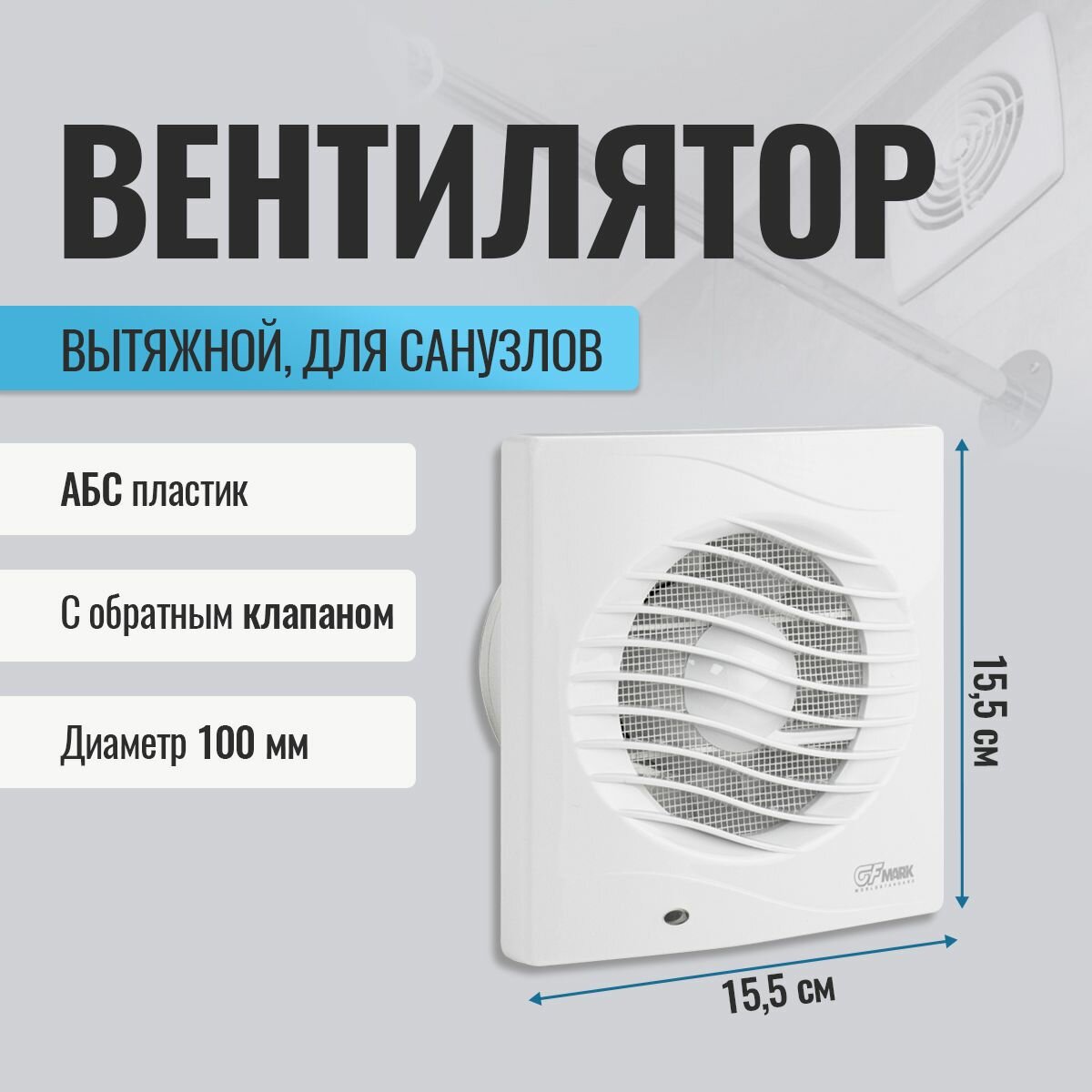 Вытяжной вентилятор GFmark 5001 /белый/ из ABS пластика /d-100/ мм с обратным клапаном и москитной сеткой.