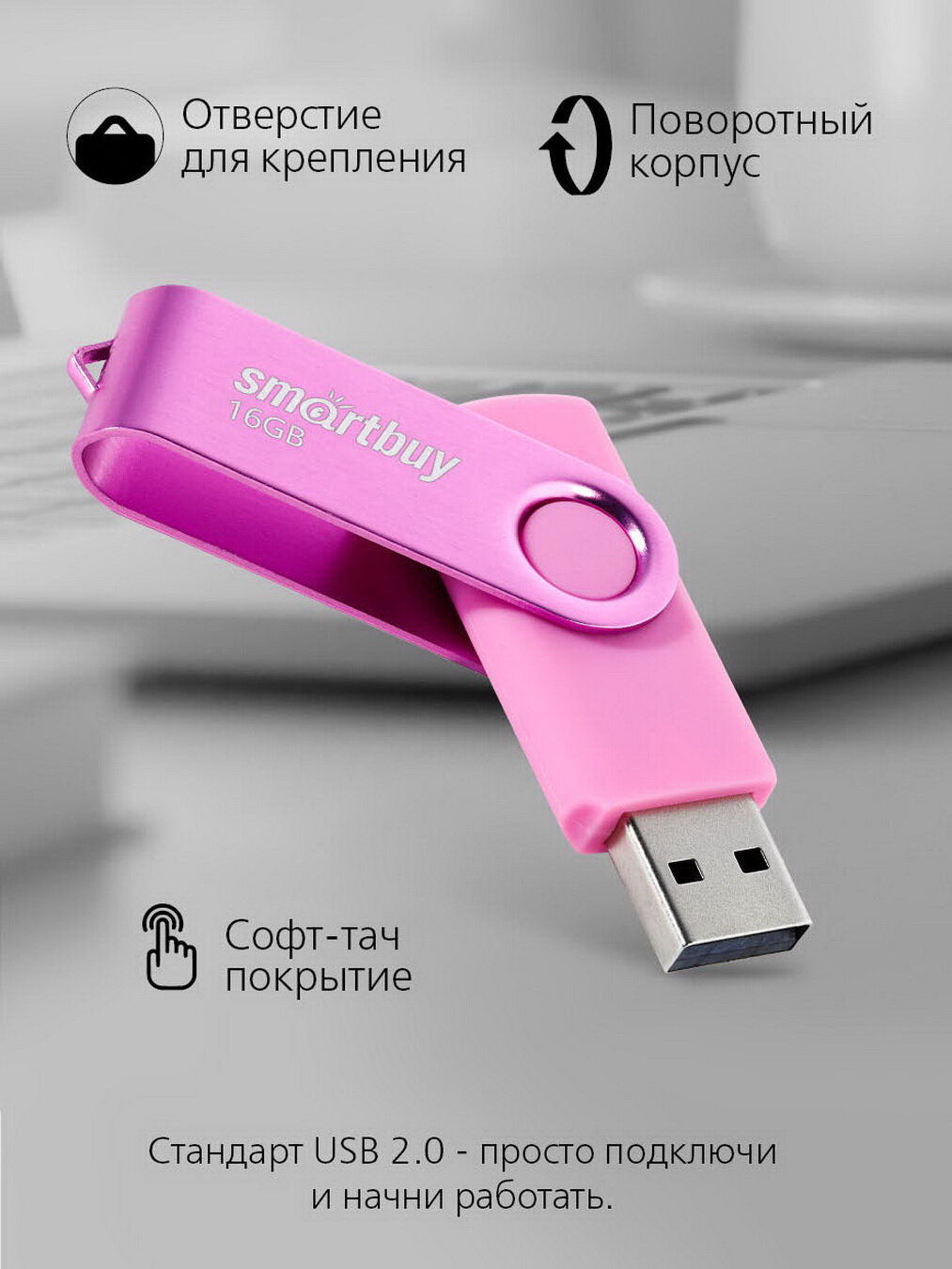 СохранитьUSB флеш накопитель Smartbuy 16GB Twist (SB016GB2TWP) розовый интересное: