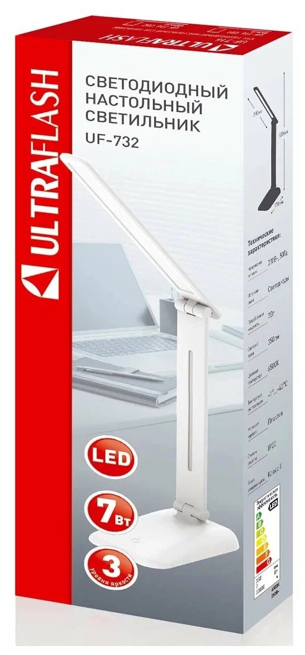 Настольная лампа Ultraflash UF-732 C01 белый LED, 7 Вт, 3 уровня яркости