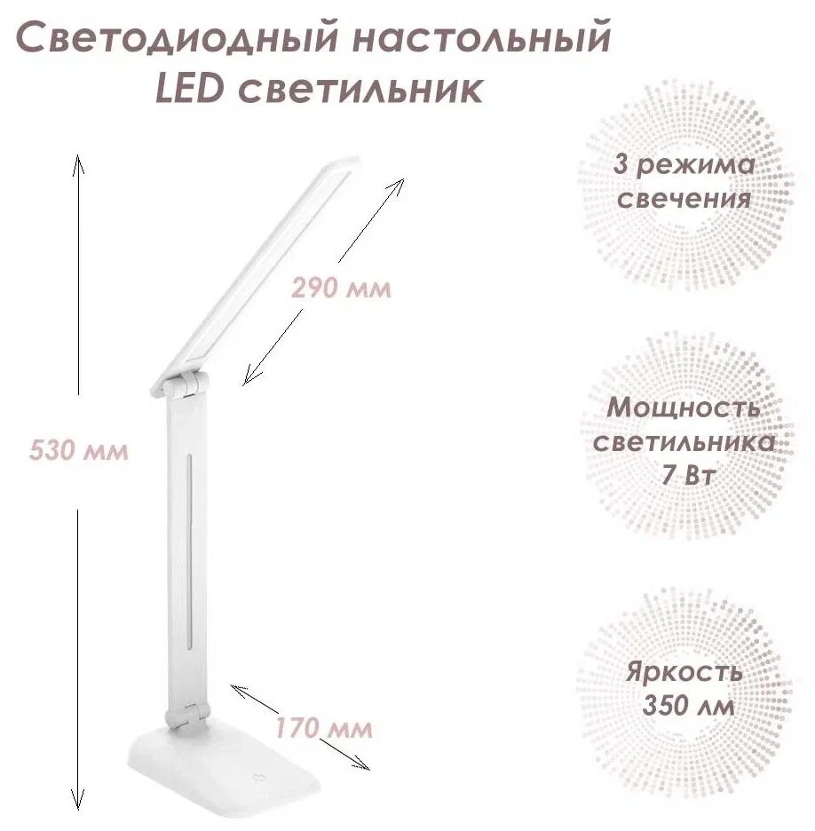 Светильник настольный Ultraflash UF-732 (LED7 Вт, 3 уровня яркости) белый