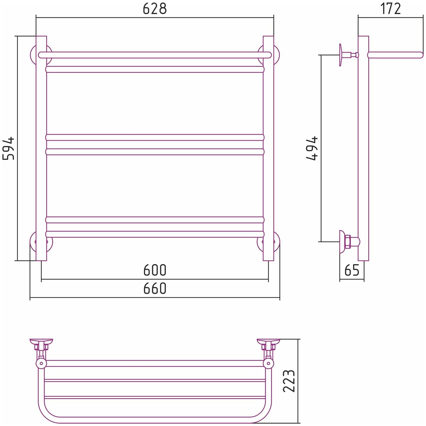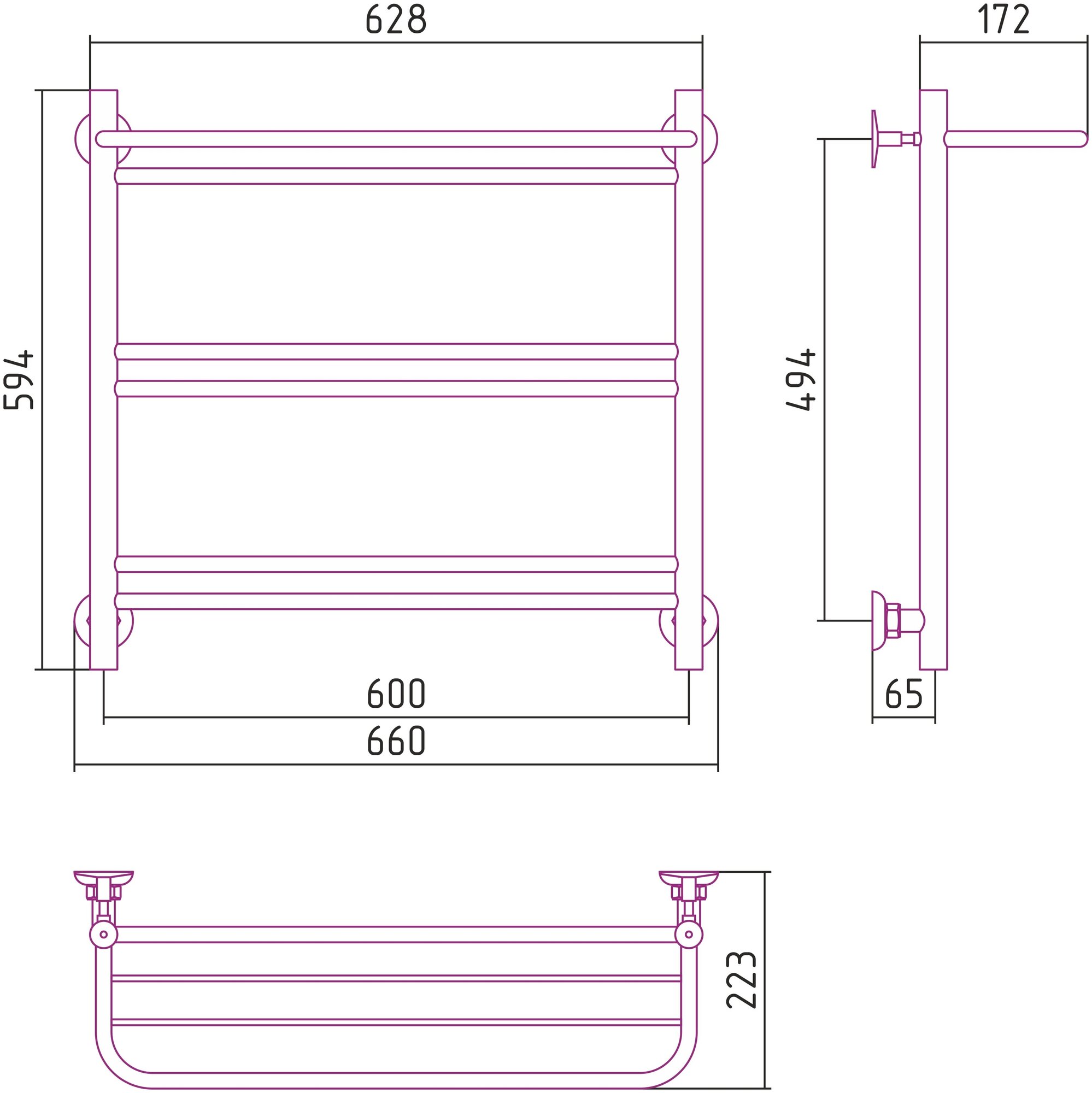 Полотенцесушитель водяной стилье "Версия-Н2" 600х600 (5) Г 18 / черный