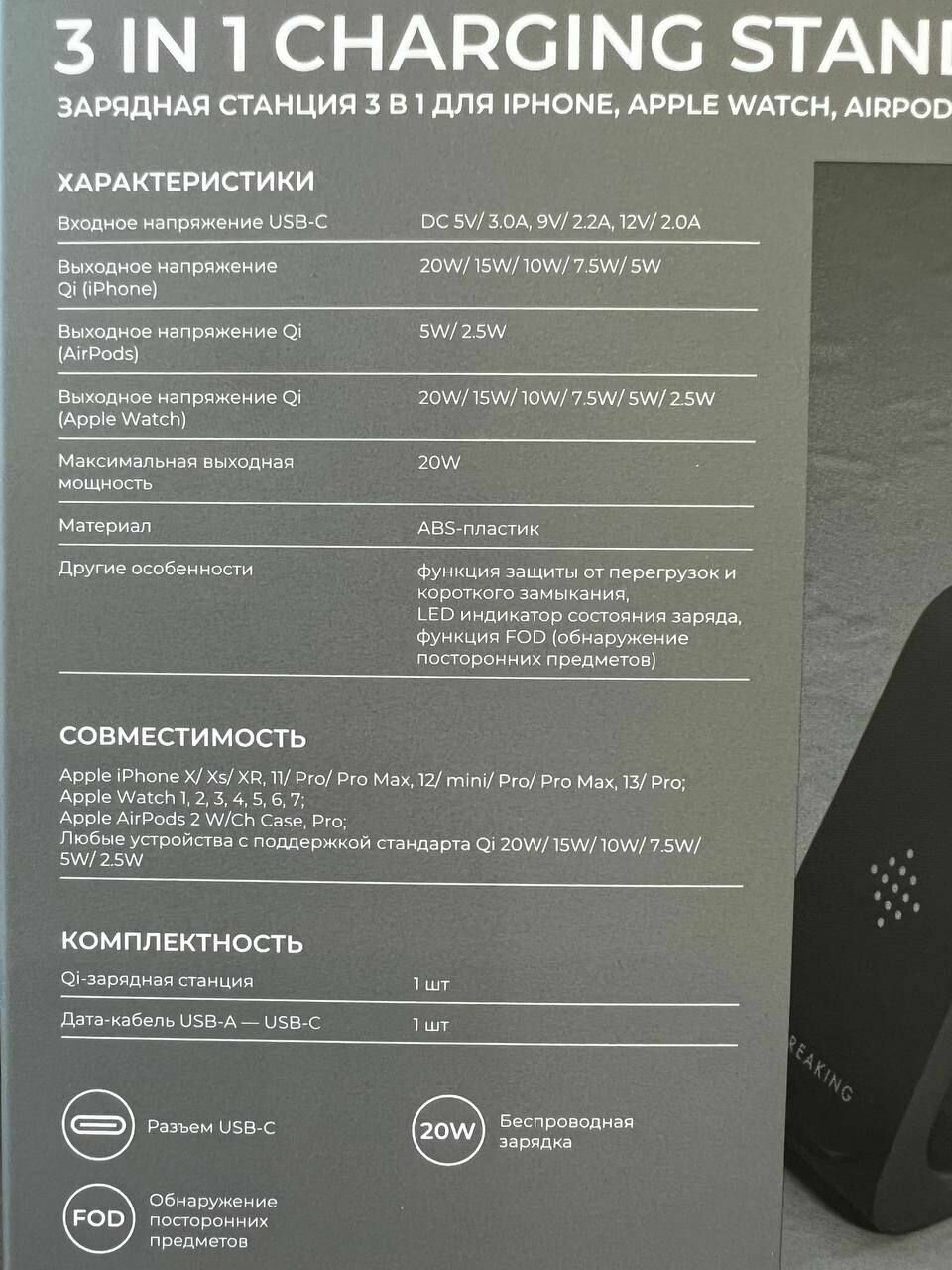 Беспроводная зарядная станция Breaking DS03 3 в 1: iPhone, Apple Watch, Airpods 20 Вт (22307) Черный интересное: