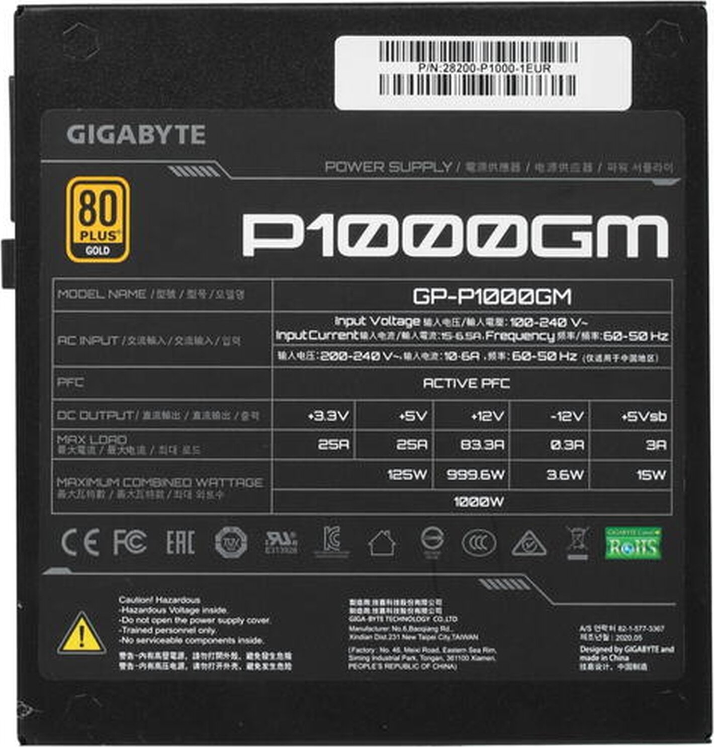Блок питания GIGABYTE GP-P1000GM, 1000Вт, 120мм, черный, retail