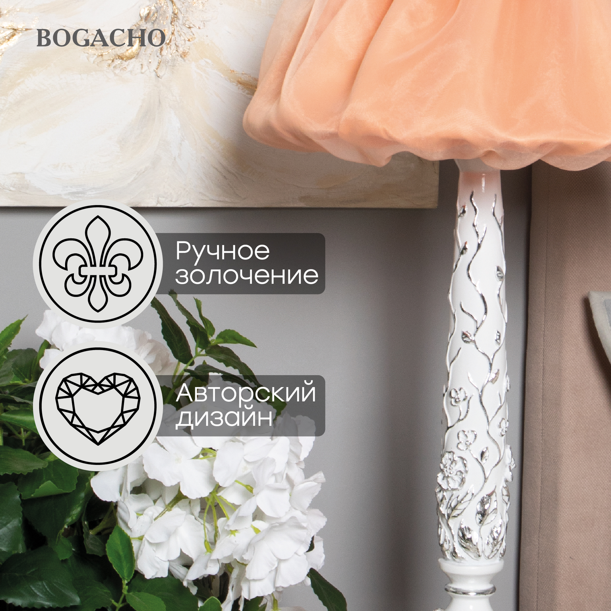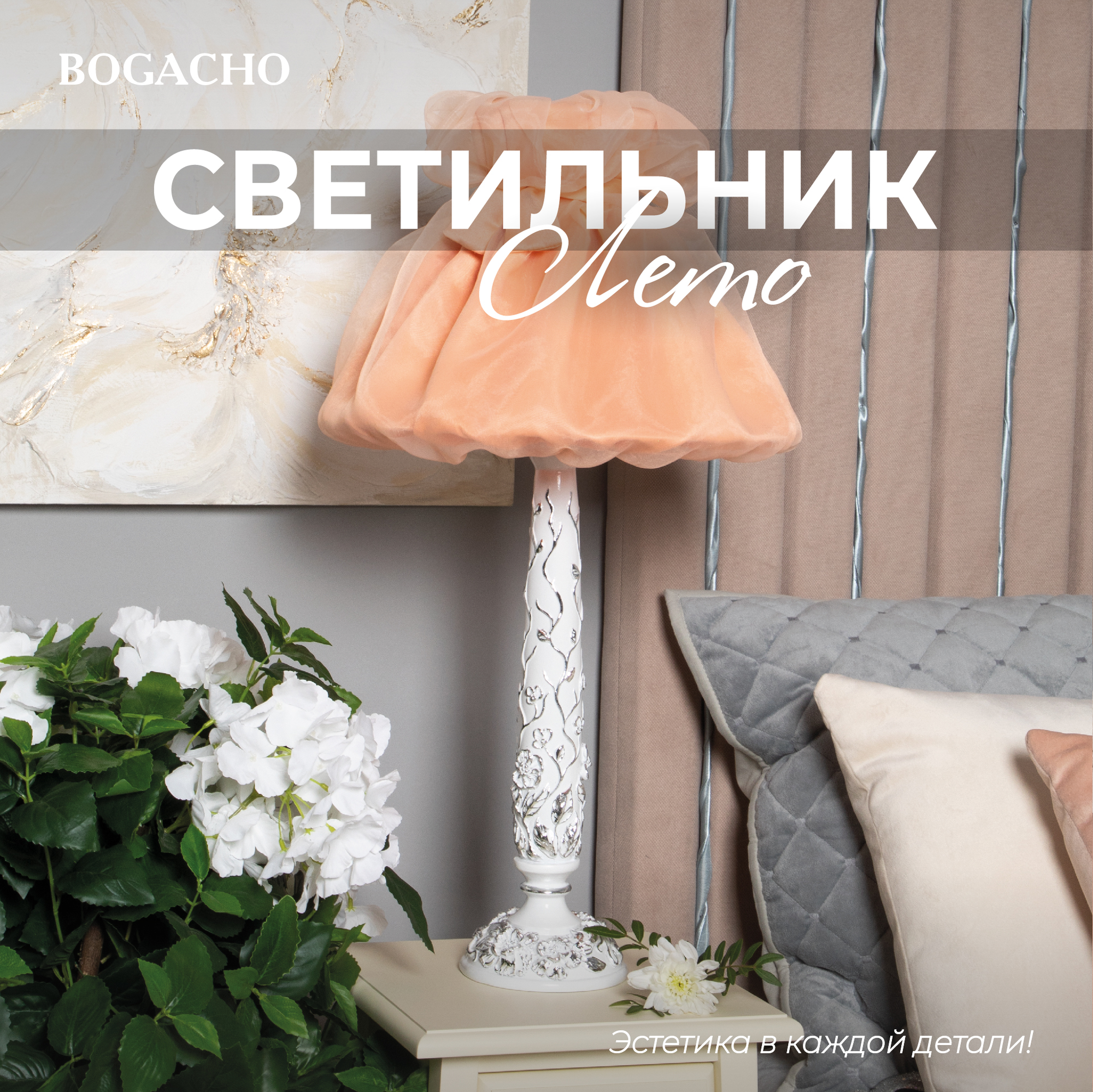 Настольная лампа Bogacho Лето белая с розовым абажуром Мадлен интересное: