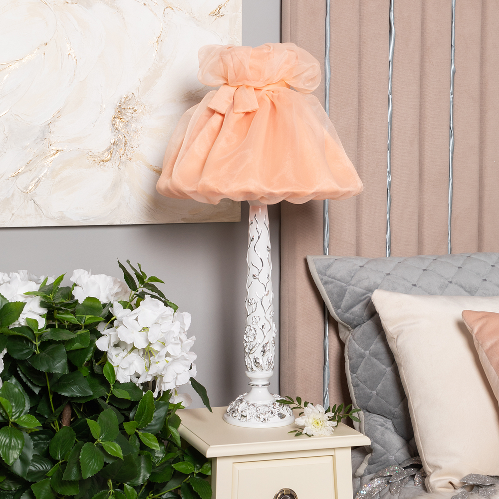 Купить Настольная лампа Bogacho Лето белая с розовым абажуром Мадлен