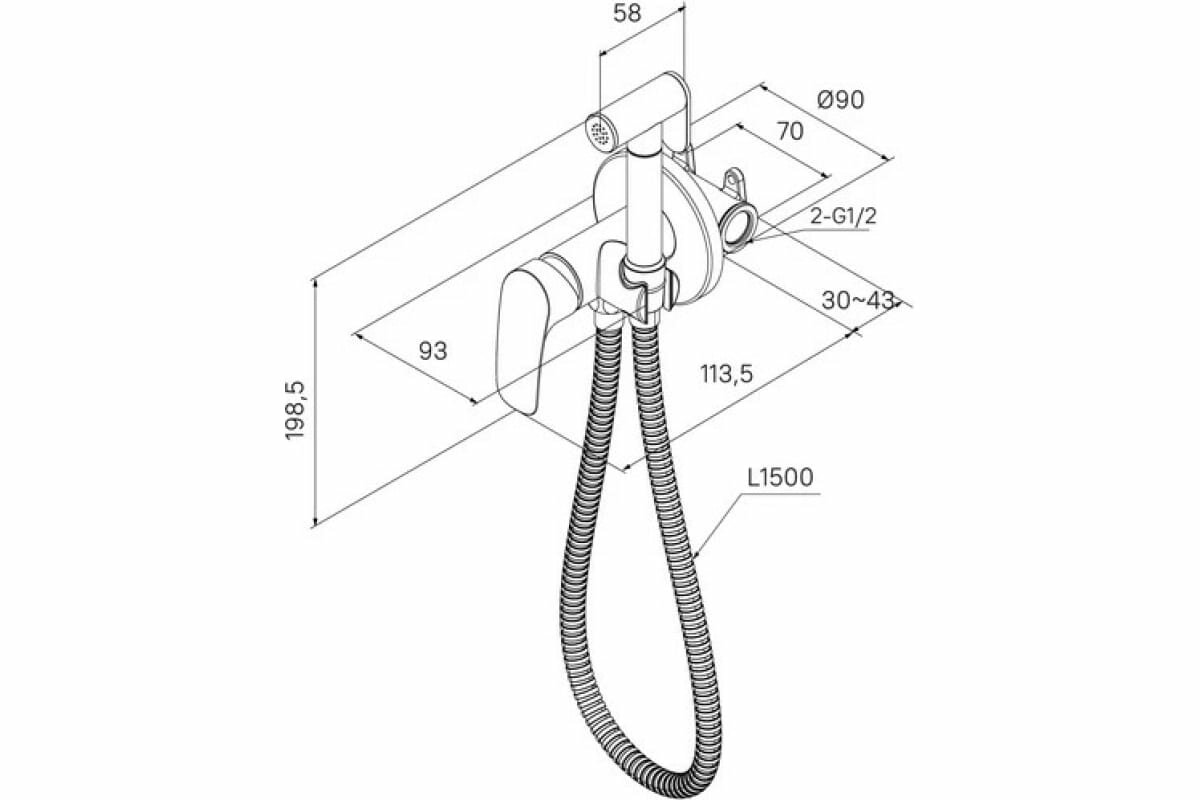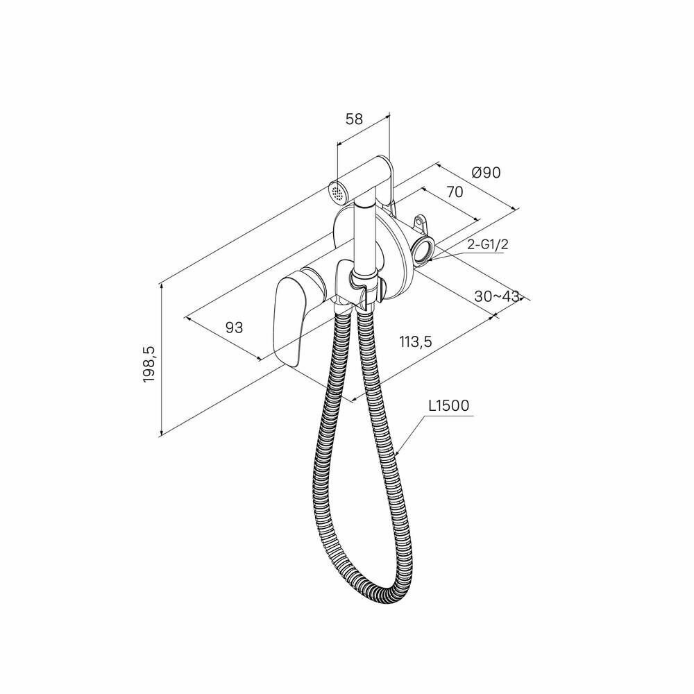 Встраиваемый смеситель с гигиеническим душем Milardo Rora RORBLR0M08
