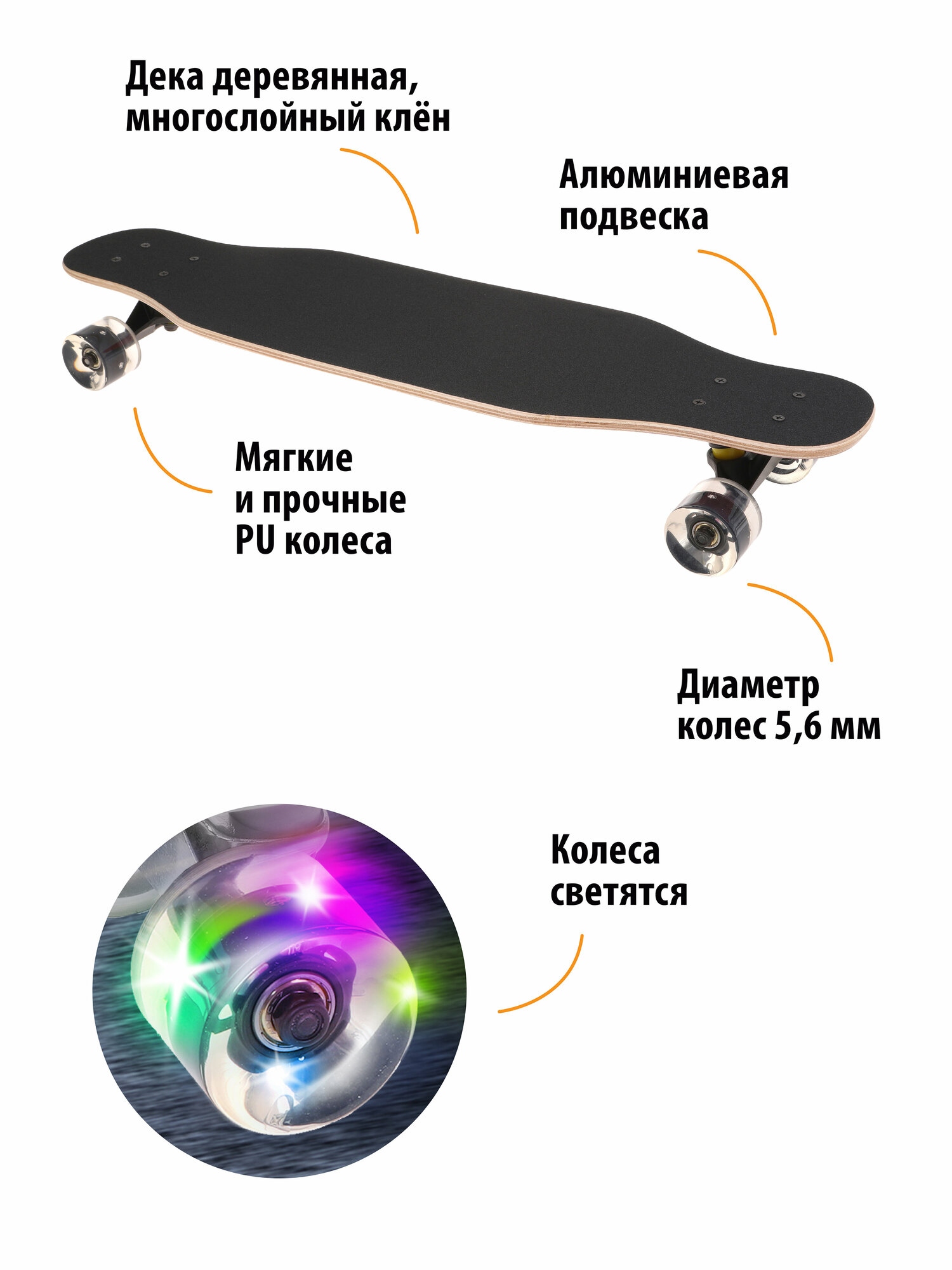 Скейтборд-лонгборд Х-Match дека клён с наждачным покрытием 80 х 20 см колёса PU 649113 интересное: